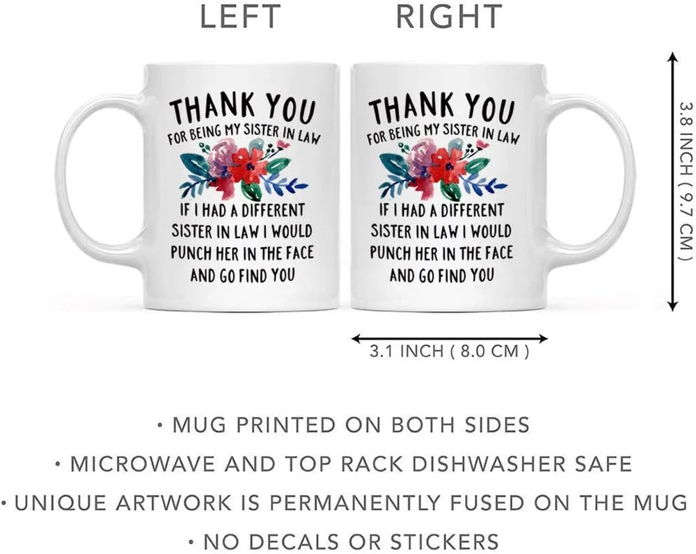 SIZE: Holds 11oz of your favorite tea, coffee or beverage. CREATIVE GIFT IDEA - Perfect Christmas or Birthday Gift for friends, family, colleagues, and for yourself.This Represents an Affordable Novelty They Will Appreciate for Years. HIGH QUALITY CERAMIC - Printed on both sides, We use the finest ceramic material with our products. The sturdy ceramic construction gives you long-lasting durability and will last you for many years to come.Microwave and dishwasher safe,so you can assure that the print on the mugs will never peel or weaken over time even under extreme hot or cold temperatures. A Must Have Cup in Your Life - Classic design ceramics mug is perfect for coffee, cappuccino, latte, espresso, tea, iced beverages, and other juice, essential need for your kitchen. Also suitable for restaurants, cafes, office and so on. CAREFULLY PACKAGED - Extra protective packaging is important for our products and clients to ensure that the gifts will arrive in good condition. Product Description ABOUT THE MUG SIZE : 11oz Mug makes a great gift for the coffee, cappuccino, latte, espresso, tea, iced beverages, and other juice lover in your life! QUALITY THAT LAST : Made from Premium smooth, scratch, and UV protected , Quality stoneware ceramic for outstanding durability. High quality artwork design is permanently fused on both sides of the mug making it a durable keepsake gift THE PERFECT GIFT Whether you need a birthday gag gift for your best friend, wife, girlfriend, dad, teacher, mom, sister, or even some thank you gifts for coworkers that they'll enjoy for years, we’ve got you covered. These coffee mugs can also be the perfect gag gifts for your loved ones on any special occasion like; wedding anniversary, Engagement, newlywed, and many more! Our mugs have several uses as well, you can use it as your go to coffee mug, tea cup, espresso mug! SMASH PROOF FOAM FILLED Extra protective packaging is important for our products and clients to ensure that the gifts will arrive in good condition. DQG CVT COFFEE MUG Whether you're looking for a unique gift for a friend, coworkers, bosses, employees or a family member.Perfect gift for birthday, mothers Day, fathers day, anniversary, wedding, retirement, housewarming, cat lovers, appreciation, boss, engagement, bridal shower, bachelorette, graduation, friendship, Christmas, secret Santa, Hanukah or any other joyful occasion. DQG CVT has the perfect gift for every interest or occasion!Visit our storefront to see similar products and much, much more!