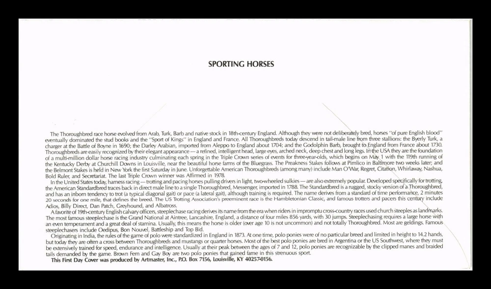 No reserve auctions ending by the minute 7 days a week. Store Home View All Listings Items Ending Today Bookmark Us Feedback Contact Us MENU Store Categories Store Support Home View All Listings Items Ending Today Bookmark Us Feedback Contact Us Fun auctions ending every minute! True auctions starting at a penny! New items added 7 days a week! Store Categories Product Description DR JIM STAMPS US COVER SPORTING HORSES FDC PLATE BLOCK ARTMASTER CACHET Questions about this item? Click here to contact us! Payment Terms US buyers pay only $1 plus $0.10 for each additional item for up to 40 items. Please wait to pay if you have outstanding bids. Bidders have up to 10 days before making payment. There is no need for "fast payment" as we would prefer you wait an assemble a group of items. It's much easier than handling multiple payments. Too, all items paid together ship at the same time. Please don't let items go unpaid past 11 days time. Combining Items We are always happy to combine items. Buyers may wait for up 10 to pay for items. Our items auto-calculate at checkout. There is no need for "fast payment" as we would prefer you wait an assemble a group of items if you have multiple bids. All items paid together ship at the same time. We usually invoice once a week. It's OK to skip a week before making payment. International Buyers Our items will auto-calculate for buyers outside the US at checkout. Buyers do not need to wait for an invoice. Rates calculate as follows: $1.95 for the first item and only $0.30 for each additional item, (up to 40 items per group) It's OK for buyers to wait up to 10 days for combined payment and shipping discounts. International buyers-Please note: Import duties, taxes, and charges are not included in the item price or shipping cost. These charges are the buyer's responsibility. Please check with your country's custom office to determine what these additional costs will be prior to bidding or buying. Shipping Terms US buyers pay only $1.00 plus $0.10 for each additional item for up to 40 items. Our items will auto-calculate and combine at checkout with no need for invoice. Outside the US buyers pay $1.95 for the first item and $0.30 for each additional up to 40 items. We ship 5-6 days a week via USPS for quick shipment. Bidders can enjoy combined shipping by first assembling a group of wins and then make one combined payment. We will gladly combine items up to 10 days apart. Upgraded Shipping US buyers may upgrade shipping to a rigid Stay Flat cardboard mailer that also include package tracking and $100 insurance. The cost is only $4 per shipment. Contact us for this service. Returns Policy We strive for 100% customer satisfaction. Any item may be returned to us within a full 14 days for a no questions asked refund. About Us Buy with confidence! Customer satisfaction is our top priority. Most of our business is from repeat buyers. Our company has been selling online since 1997. We are a Licensed Auction Company selling thousands of items every week via online auctions with no reserve. We have sold millions of covers, postcards, stamps, coins, and other collectibles since 1979. Contact Us Bidders may contact us via eBay messages for any questions or comments. We answer email messages during business hours. Buyers may also reach us by phone during business hours. You must leave a message for a return call. Auction Items Ending by the Minute 100's of New Items Added Daily Shop By Category Featured Items Home View All Listings Items Ending Today Bookmark Us Feedback Contact Us Copyright © Asset Auctions Online . All rights reserved. eBay Template Design NinjaTemplates