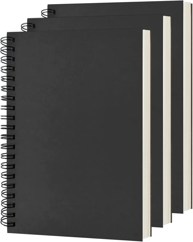 DSTELIN Blank Spiral Notebook, 3-Pack, Soft Cover, Sketch Book, 100 Pages / 50 S