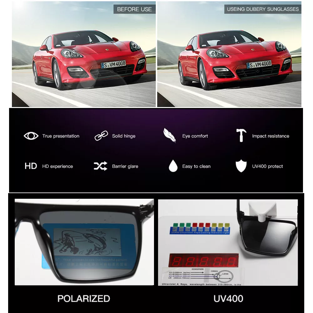 DUBERY Men Women Polarized Sport Sunglasses Square Driving Fishing Glasses UV400