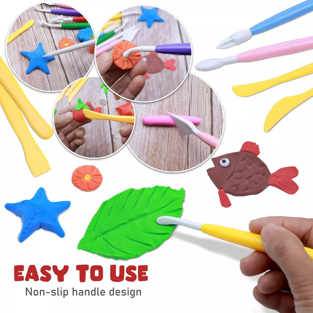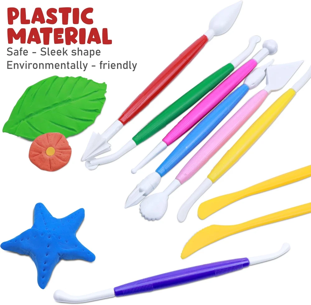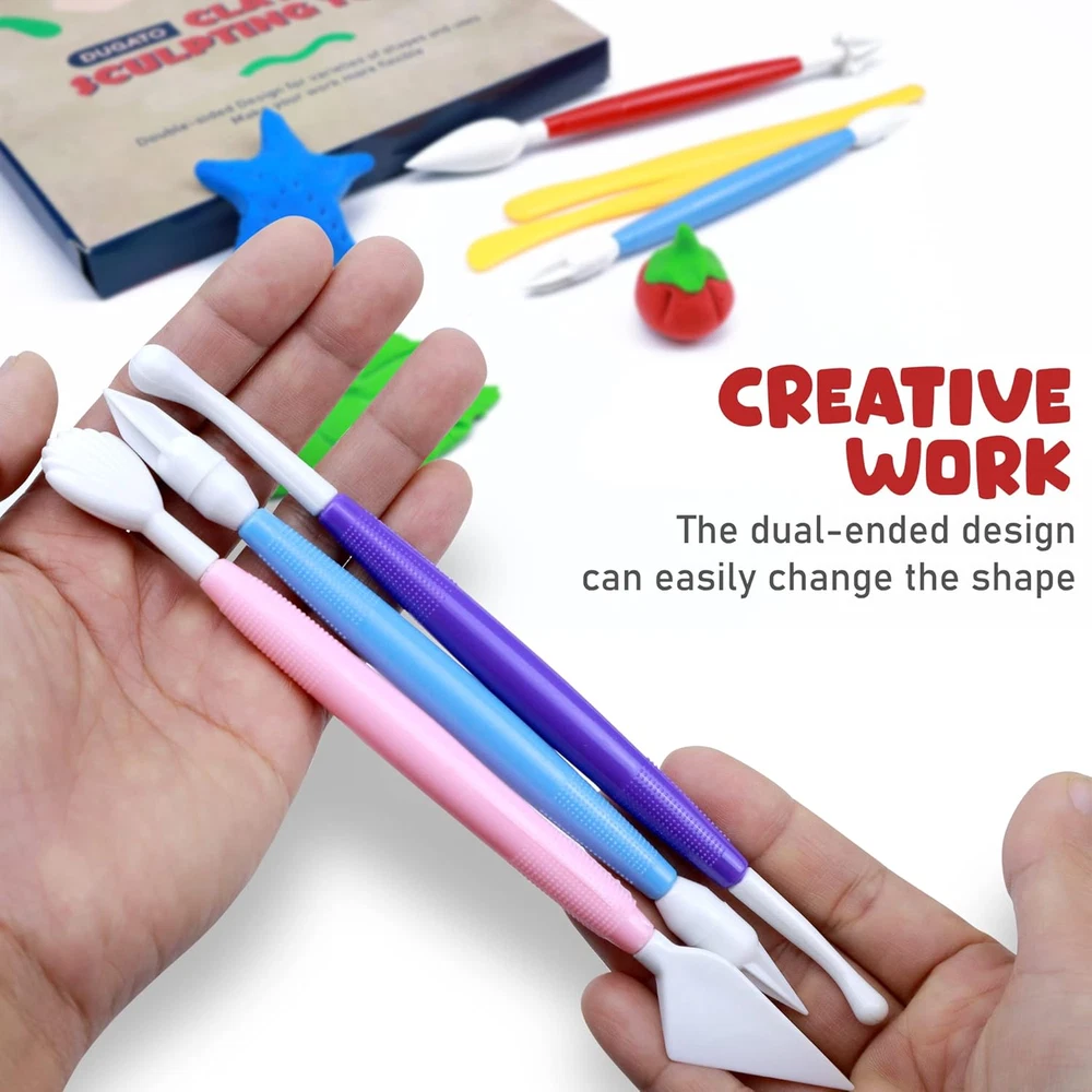 All The Clay Sculpting Tools You Need: This modeling clay tool provides you with all the necessities for clay sculpting. The package includes 7 double-ended tools, 2 pointed tools, 1 scraper, and 7 different plastic modeling tools. These model magic tools are specifically designed for various tasks such as carving, shaping, modeling, scraping, cutting, brushing, smoothing, and intricate detailing. The Best Quality Clay Dough Tools: Made from lightweight and safe plastic material, these clay accessories for young individuals are highly suitable for use. They not only facilitate the development of young individual's manual creativity but also encourage them to unleash their imagination to the fullest extent. Enhance Your Creative Work: With our versatile double-head clay shaping tools, you'll enjoy increased flexibility in your artistic endeavors. Our double-head sculpting tools feature a variety of shapes, including spherical, shovel, cone, and shell shapes, catering to the intricate details of your work. Best Gift For Creatives: Put a smile on a friend or family member's face! These modeling clay accessories can help you shape different clay patterns that you want, and can also be used to create delicate cake modeling, flower pattern carvings, etc. This tool kit is the perfect choice for creatives, whether they're beginners or an adult. Peaceful Shopping Experience: We stand behind the quality of the clay tool set, ensuring your utmost satisfaction. In the unlikely event that this set does not meet your expectations, please don't hesitate to contact us. We are dedicated to providing a refund process that is both easy and stress-free. Product Description About Us DUGATO provides a variety of art and craft supplies for all skill levels, ages and genders. We focus on making premium tools for painting enthusiasts and inspire to express their personality We are committed to providing you the most satisfying experience with positive attitude. Product Features Variety of Shape: includes 17 different double ended tools, providing you large amount of shapes to cut, curve, made petal shape, spherical shape, shell shape, leaf shape Safe Materials: made from high quality, long-lasting and safe plastic, don’t have to worry about that your clay tools will contaminate your cakes or cookies, or plastic scraps on your ceramics. Comfortable Grip: The handle of the plastic clay tools is straight with rough section between the nib and the body of the tool, have a more firmly grip, comfortable grip even you have a sweaty hand. Wide Application: This set is suitable for homes, schools can be applied with many material like clay, plasticine clay, model magic, polymer clay, air dry clay Premium Material The clay sculpting tool is well made with high quality, durable and safe material plastic and metal. So your kids can play safely without worrying about safety or easily broken parts with colorful appearance. Non-slip Handle Each tool is designed with rough section between the nib and the body of the tool on both heads. You can have a comfortable grip when using even with your sweaty hands No Sharp Points & Edge Our tool is designed to easily cut through clay, but do not have really sharp point or edge that can tickle your kids or able to make some serious damage to them. Wide Application You can use this tool for many types of clay from plasticine clay, model magic, polymer clay, air dry clay…or to make some cute patterns to your cakes, cookies and sugar paste Double - Headed Each clay tool has 2 different shapes, increase more shape available for you to create your work , save space and money with this smart design Inventive Work Suitable for beginner and professional level, to cut, smooth, carve , shape , sculpt in many occasions such as parties, wedding, celebrations, homes, or classes. MAKE YOUR OWN CLAY & SCULPT AWAY! Perfect Gift for Children : This set of children's plastic clay sculpture tools is suitable for home and school use. Our carving tools can be easily DIY, not only can exercise children's manual creativity, but also allow them to use their imagination. This will bring happy crafting time to the children and help the family's crafting time. Warm Tips: Our clay tools can be thoroughly cleaned with soap water Please store in cool place and avoid direct sunlight Package Includes: 7 double-ended tools 7 kinds of plastic modeling tools 2 pointed tools 1 scraper Sizes (approximately): 14-18cm/5-7inch Material: Plastic , Metal Gift Box