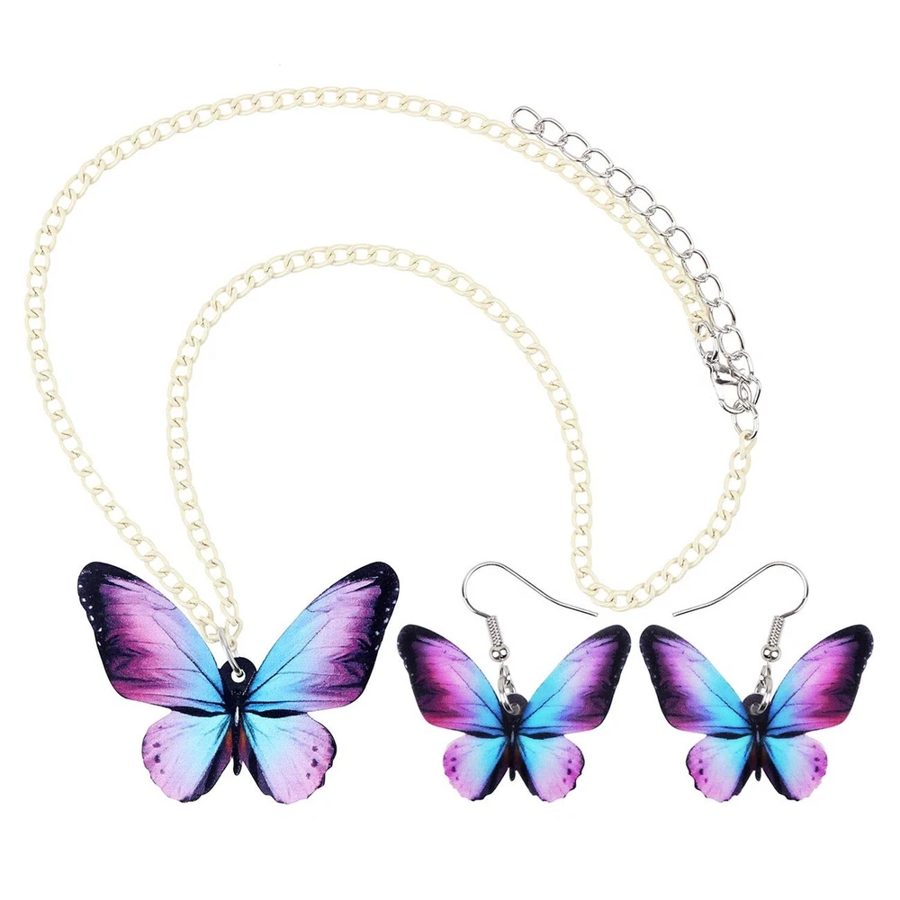 DUOWEI Acrylic Purple Butterfly Jewelry Set Cute Monarch Butterfly Earrings Necklace Charms Insect Dangle Pendant Ornament Gifts for Women Product Details Color: Purple Brand: DUOWEI MPN: Does not apply UPC: Does not apply EAN: Does not apply Product Dimensions : 1.34 x 1.81 x 0.17 inches; 0.65 ounces Department : womens Date First Available : June 2, 2023 Manufacturer : DUOWEI JEWELRY Brand, Seller, or Collection Name: DUOWEI Metal: Stainless Steel Material: Acrylic, Stainless Steel Gem Type: No Gemstone Setting: Other-Setting-Type Item Length: 1.34 inches Chain: U Clasp: Other clasp type Ring size: Adjustable Design&Produce by DUOWEI Jewelry DUOWEI HAVE COPYRIGHTS