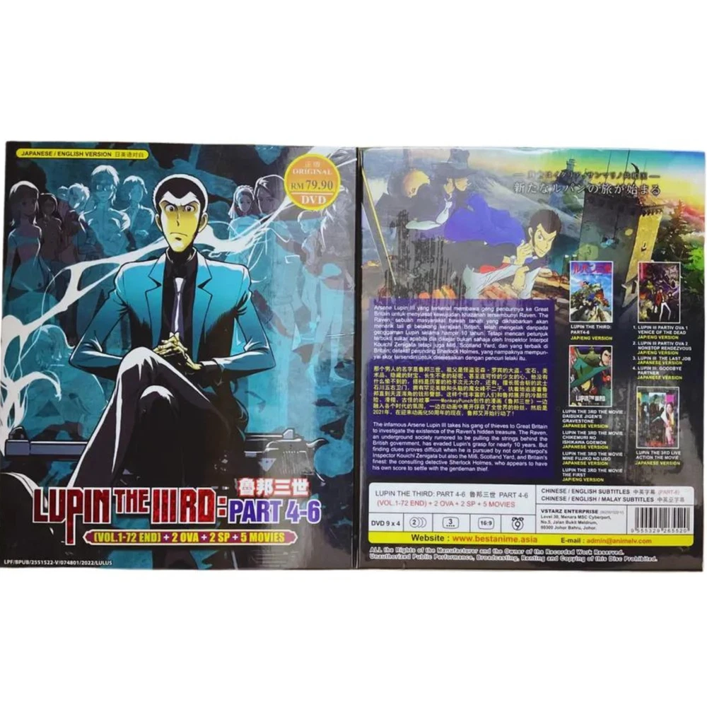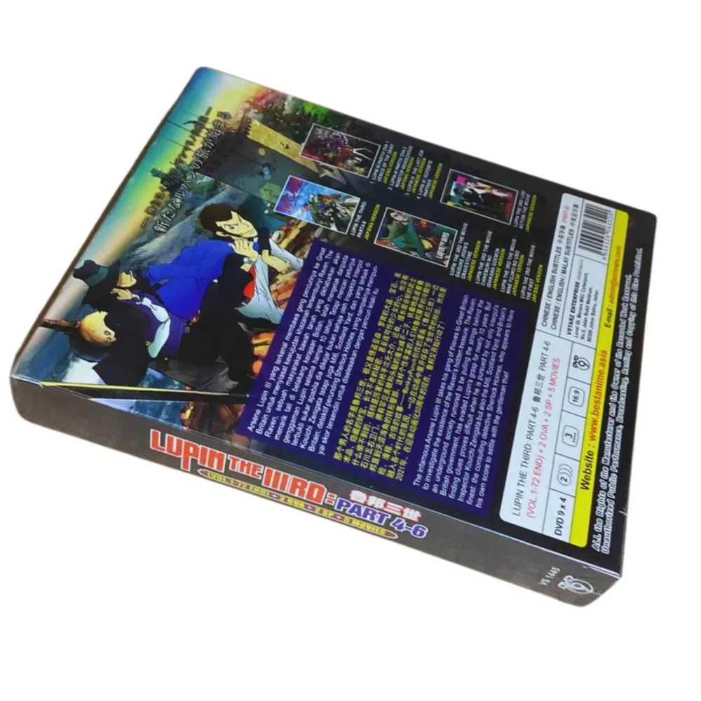DVD ANIME Lupin The Third Part 4-6 (1-72 End) + 2 OVA+2 SP+ 5 Movie ~ English DUB/SUB All Region Synopsis: Part 4 : Lupin III's marriage to thrill-seeking entrepreneur Rebecca Rossellini is merely a pretext for him to commit a string of heists across Italy and San Marino. Part 5: Genius thief Arsene Lupin III—along with the usual crew of Goemon Ishikawa XIII, Fujiko Mine, and Daisuke Jigen—finds himself in modern-day France, where he encounters both new and old adversaries, with Inspector Kouichi Zenigata still hot on his trail. As they steal from darker, more sinister entities, they will also have to find a way to deal with the newest technology in their escapades, as well as face the ghosts of their pasts. However, this time, Lupin's choices begin to catch up with him as his pursuers use every tool at their disposal to take him down once and for all. Part 6: The infamous Arsene Lupin III takes his gang of thieves to Great Britain to investigate the existence of the Raven's hidden treasure. The Raven, an underground society rumored to be pulling the strings behind the British government, has evaded Lupin's grasp for nearly 10 years. But finding clues proves difficult when he is pursued by not only Interpol's Inspector Kouichi Zenigata but also the MI6, Scotland Yard, and Britain's finest: the consulting detective Sherlock Holmes, who appears to have his own score to settle with the gentleman thief. Features and further details Title : Lupin The Third : Part 4 - 6 Vol. 1 - 72 End + 2 OVA + 2 Special + 5 Movie (English Subtitles) Details: No Of Disc : 4 Disc Language : Part 4-6 + 2 OVA + Movie - The First : Japanese / English 2 Special + 4 Movie : Japanese Subtitle : Chinese / English Format : DVD / NTSC & All Region Code (16.9) Weight: 259g Contact us We can be contacted at any time through eBay messages if you have any questions, comments or product requests. We will respond to you within 24 hours and do our best to help you out! We encourage our customers to contact us with any questions or concerns! We'd like to be sure you are completely satisfied with your purchase. Payment We accept payment via eBay - managed payment Shipping We are using standard international shipping. Handling time is 1-3 business working days. Your goods will be shipped with valid tracking number. All products is packed , layered with bubble wrap to reduce damages during shipment delivery. Estimate delivery is between 11 to 23 business working days. We also provide express shipping as an option. Estimated delivery is between 5 to 8 business days. **Rest assured we will ensure your package arrives as soon as possible. However, the delivery may be delayed due to some unforeseen circumstances which is out of our control, such as bad weather, high postal traffic and the performance of shipping companies. Return If you have any problem with the order, do contact us via eBay message, we will be glad to assist you and resolve your problems as soon as possible. Items can be returned within 30 days in good condition. Note: Import duties, taxes and additional charges are not included in item price or shipping charges. Please be aware these custom import duties and taxes are buyer's responsibility. Free eBay listing template designed by © dewiso.com .