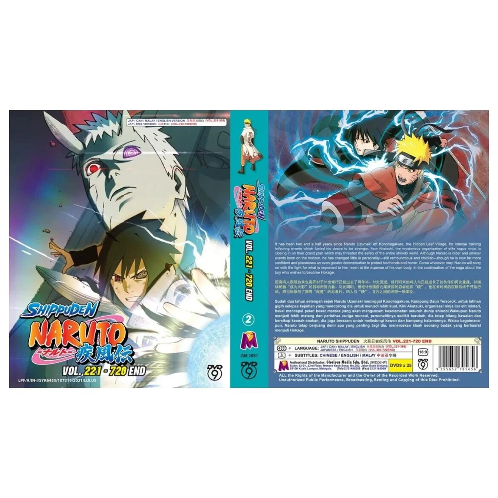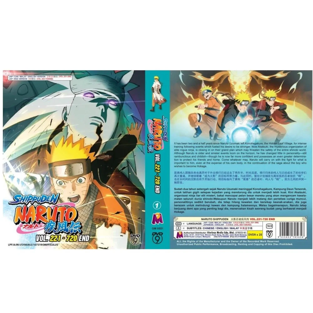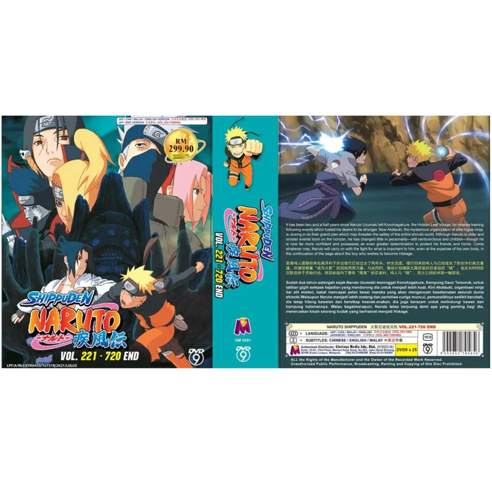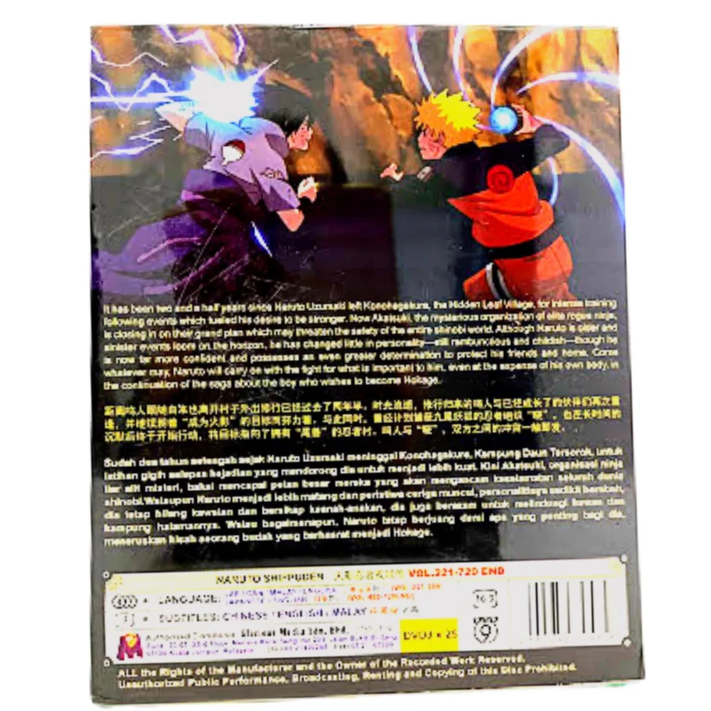 Region Code: DVD: 0/All (Region Free/Worldwide) Studio: Pierrot Aspect Ratio: 16:9 Release Year: N/A Case Type: Tall/DVD Case Subtitle Language: Chinese, English Sub-Genre: Action, Adventure, Superhero Language: English, Japanese Season: Complete Series Type: TV Series Director: n/a Actor: Naruto Shippuden Movie/TV Title: Naruto Shippuden Features: Dubbed, With Subtitles Genre: Action, Adventure, Animation, Anime Country/Region of Manufacture: Malaysia UPC: Does not apply Rating: PG gtin13: Does not apply Edition: Box Set Video Format: NTSC Format: DVD Franchise: N/A