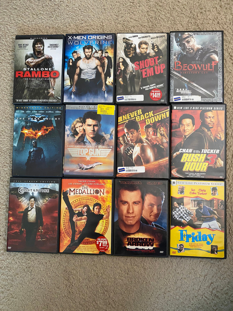 PLEASE NOTE: DVDs have been visually inspected for cracks or major damage, and all cases are intact. These DVDs have not been tested in a player, so playback quality is unconfirmed Description : This extensive DVD lot includes a wide variety of popular movies, ranging from blockbuster series like Harry Potter and Star Wars to action, comedy, and family favorites. This collection is perfect for movie enthusiasts looking to expand their library with both new and classic titles. Here’s a breakdown of the details: Condition : DVDs have been visually inspected for cracks or major damage, and all cases are intact. These DVDs have not been tested in a player, so playback quality is unconfirmed. New/Sealed : Three DVDs are brand new and sealed, as pictured (includes The Pursuit of Happyness , Enchanted , and the Harry Potter two-film collection). Highlights : Harry Potter Series : Multiple films from the series. Star Wars Collection : Includes DVDs from both the original trilogy and the prequels. Variety of Genres : Action, comedy, romance, family films, and classics. Classic Titles : Includes cult classics and family hits like Cars , Rio , Moulin Rouge , and more. Lot Contents : Harry Potter Series (various titles) Star Wars (original and prequel trilogies, with bonus materials) The Pursuit of Happyness (sealed) Enchanted (sealed) Harry Potter and the Deathly Hallows Part 1 & 2 (sealed two-film collection) Assorted action, comedy, and family DVDs such as Rambo , The Dark Knight , The Rock , and more! This is a fantastic mix of DVDs, including beloved series and classics that offer hours of entertainment. Whether you’re a collector or just looking to enjoy some great movies, this lot has something for everyone. Please Note : These DVDs are sold as-is, without testing for playback, but are visually inspected and appear in good condition.