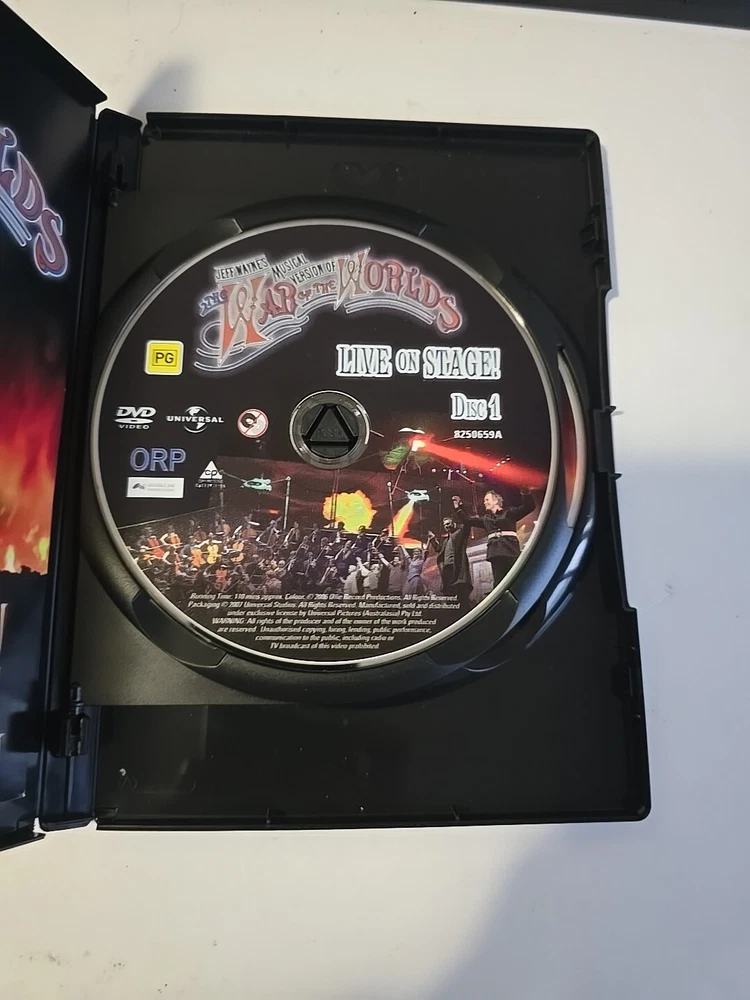 Experience the epic musical adaptation of H.G. Wells' sci-fi classic with "War Of The Worlds Live on Stage" DVD. Directed by David Mallet, this Special Edition features a captivating performance by a talented cast including Damian Collier, Russell Watson, and Justin Hayward. The DVD, in PAL format, offers a thrilling 60-minute journey through a world invaded by aliens, blending elements of action, adventure, and Broadway musicals. Immerse yourself in the unforgettable music and visuals of this 2006 production, perfect for fans of Sci-Fi & Fantasy and musical theatre enthusiasts in Australia and beyond.