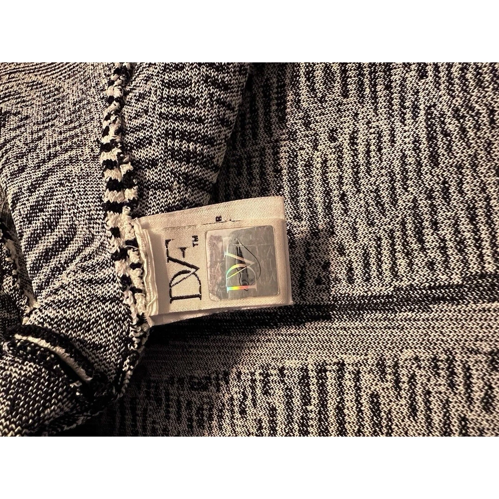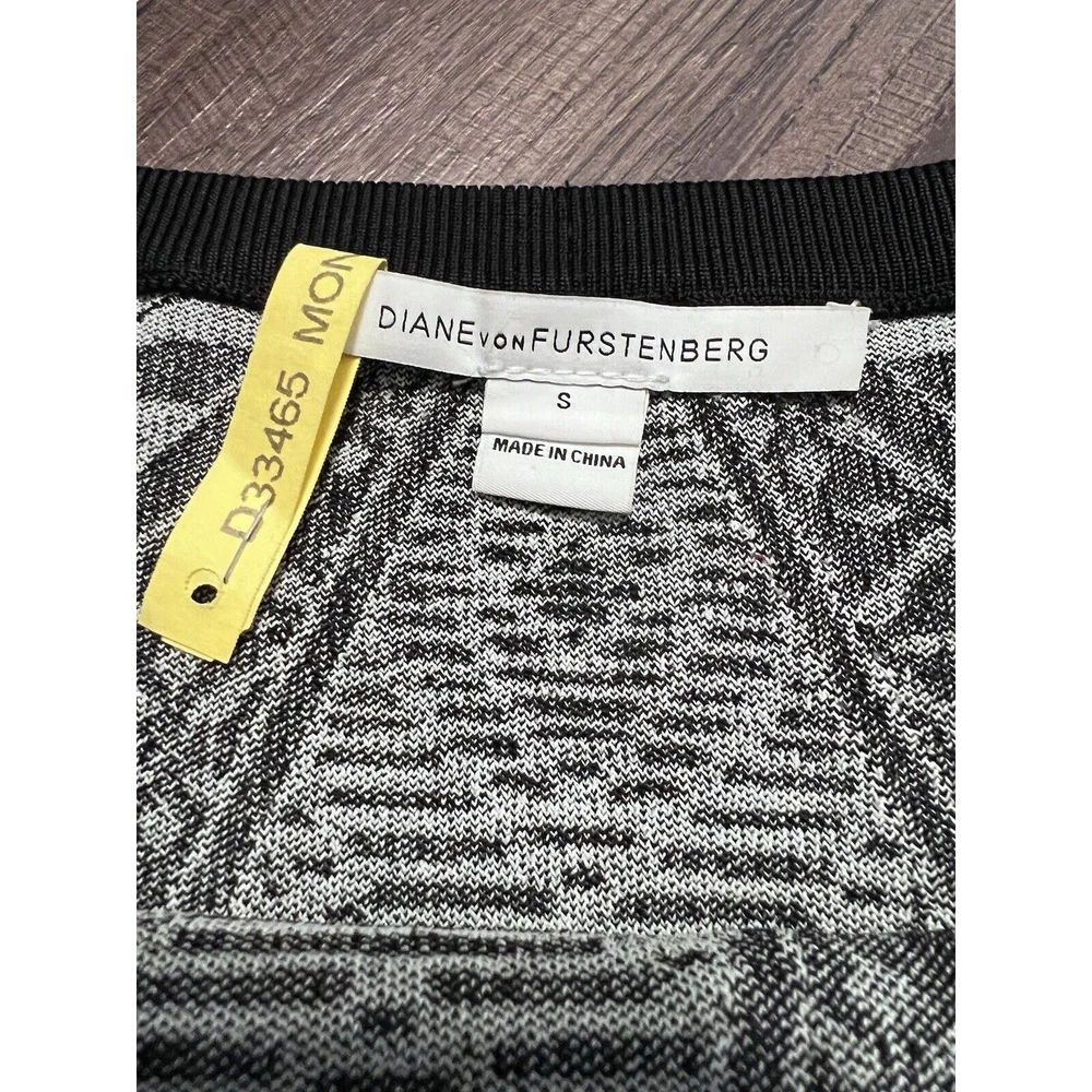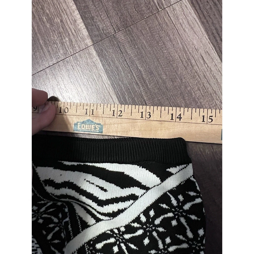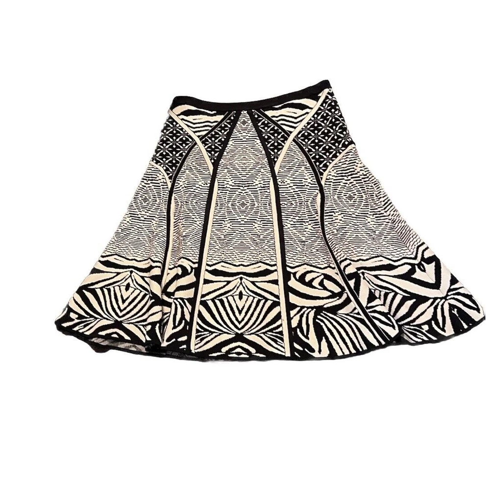 Bold contrast print skirt from Diane Von Furstenberg Thick knit sweater material 83% rayon, 15% poly, 2% spandex Flirty tulip/trumpet silhouette High quality sophisticated piece Size small