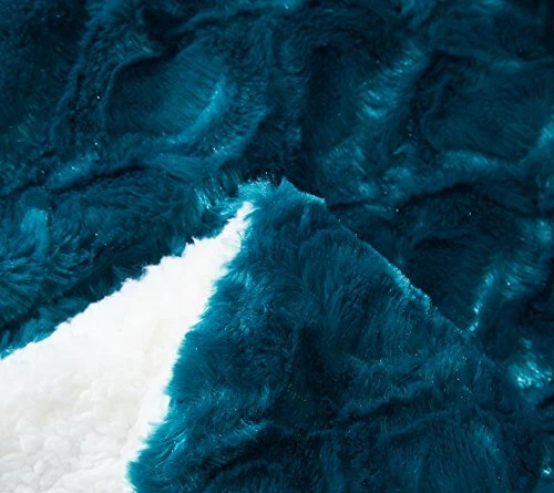 DaDa Bedding Lavish Blue Faux Fur Throw Blanket - 90" x 90" Emerald Green