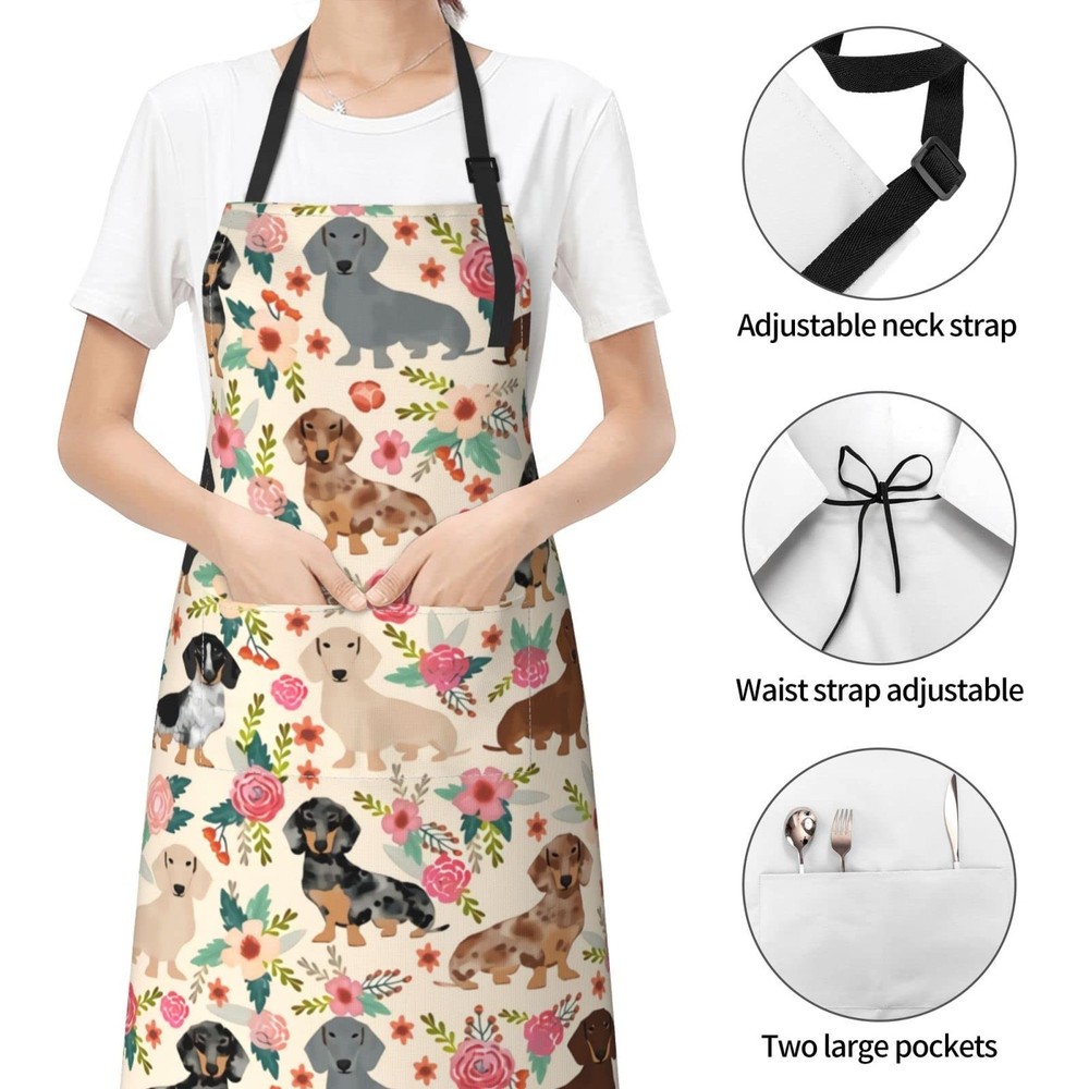 Dachshund Sausage Dogs Flowers Waterproof Apron Women Men Cooking Kitchen Adjustable Neck Aprons Bib With 2 Pockets Product Details Color: Black Size: One Size Brand: WELBB MPN: EHNC3WqzPO-461070635 EAN: 8690263630148 UPC: Does not apply Department : Women Date First Available : January 16, 2022 Manufacturer : WELBB Best Sellers Rank: #983,620 in Kitchen & Dining (See Top 100 in Kitchen & Dining) #11,728 in Aprons #11,728 in Aprons Customer Reviews: 2.3 2.3 out of 5 stars 2 ratings Kitchen The Length Of The Waist Ties Is 33in,Long Enough To Provide You With 2 Different Ways To Fix The Apron (Tie The Tie Behind Or In Front).Now You Don'T Have To Worry About The String Being Too Short To Wear An Apron. Cooking Covering From Chest To Knee Provides Great Coverage And Protection Against Kitchen Grease,Spills And Food Stains.It Is The Primary Choice For Ordinary Kitchen And Family Gatherings. Painting Keep Your Clothing Tidy While You Prep Your Favorite Things Wearing This Apron.Soft And Durable,This Solid Apron Makes For An Elegant Essential To Complete Your Kitchen Collection Or Artistic Creation.This Simple Designs Apron Features Handy Pockets At The Front To Keep What You Need Close By. Bbq Whether You Are A Bartender,Waiter,Or Someone Who Needs Security From Certain Aspects While Cooking/Serving,This Is The Product To Go For To Keep Your Garment Clean At All Times.