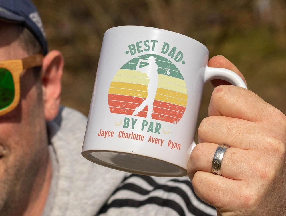 Dad Best Dad By Par Personalized White Coffee Mug Unique Custom Gift For Golfer Product Details.. This high quality 11oz. ceramic white mug has a premium hard coat that provides crisp and vibrant color reproduction sure to last for years. Perfect for all hot & cold beverages. The highest quality printing possible is used. It will never fade no matter how many times you wash it. Material: 100% Ceramic. Print both sides. Dishwasher and Microwave Safe. High Gloss + Premium White Finish. Printed in the U.S.A. Personalized & Custom. We support personalized and custom mug to add custom, when placing an order, you can add notes to the "order note" in shipping address section. Also you can contact us directly via message. Shipping Info. Ready to ship in 1 to 2 business days, All products are made-to-order and proudly printed in the United States. Shipped by USPS and DHL, You will receive your order in 5-7 days. Replace & Refund. All products are defective during shipping broken, chipped will be replaced free of charge. You are not satisfied with the product, we will refund 100% money to you. If any other issues arise, please do not hesitate to message, we would be more than happy to assist you.