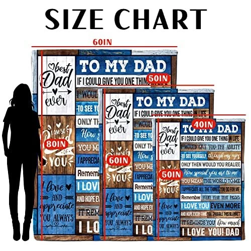 Return Policy Fast Delivery Trusted seller Dad Birthday Gift Birthday Gifts for Dad from Daughter Son Best Dad Gifts Soft Throw Blanket for Bedding Sofa (Dad Gifts, 50 x 60 Inch) Product Description 【Gifts for Dad】This special dad gifts from daughter with words for the dad printed on it and is a special gift designed just for the dad. Soft dad gifts are a good choice for dad's birthday gifts. 【Premium Material】The birthday gifts for dad blanket is made of flannel,which is lightweight, soft, and skin-friendly. This best dad ever gifts blanket is durable, comfortable, and easy to care for. 【Creative Printing】The text of the best dad gift is full of love , expressing your love for your dad. Warm blankets and warm sweet words make dad happier! 【Multi Functions】Meaningful gifts for dad not only warm the body but also the heart. Love letter blanket dad birthday gift from daughter or son is suitable for father to use indoors and outdoors when resting. 【Easy Care】This soft dad gift is easy to care for, machine washable or hand washable. Shipping Returns Payment Shipping Shipping is FREE to all addresses other than APO/PO boxes in the lower 48 states. All our stock ships from US-based warehouses. Shipped via USPS or UPS (depending on location and package weight) Unless stated otherwise, all orders will ship within 24-72 hours of your payment being processed. Check our feedback to see the great reviews of FAST shipping we offer. Returns Seller does not accept returns Payment We currently accept payment via eBay managed payments only. Once payment is cleared, we will dispatch your shipment within 1-3 business days. Please refer to the "Shipping" tab for more information regarding shipping speed to your destination.