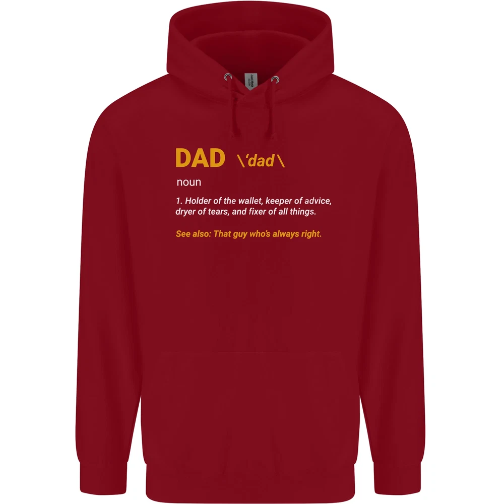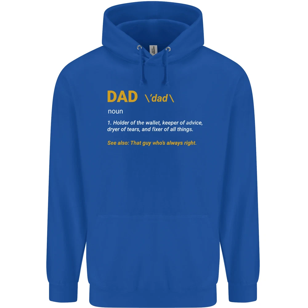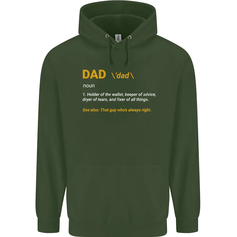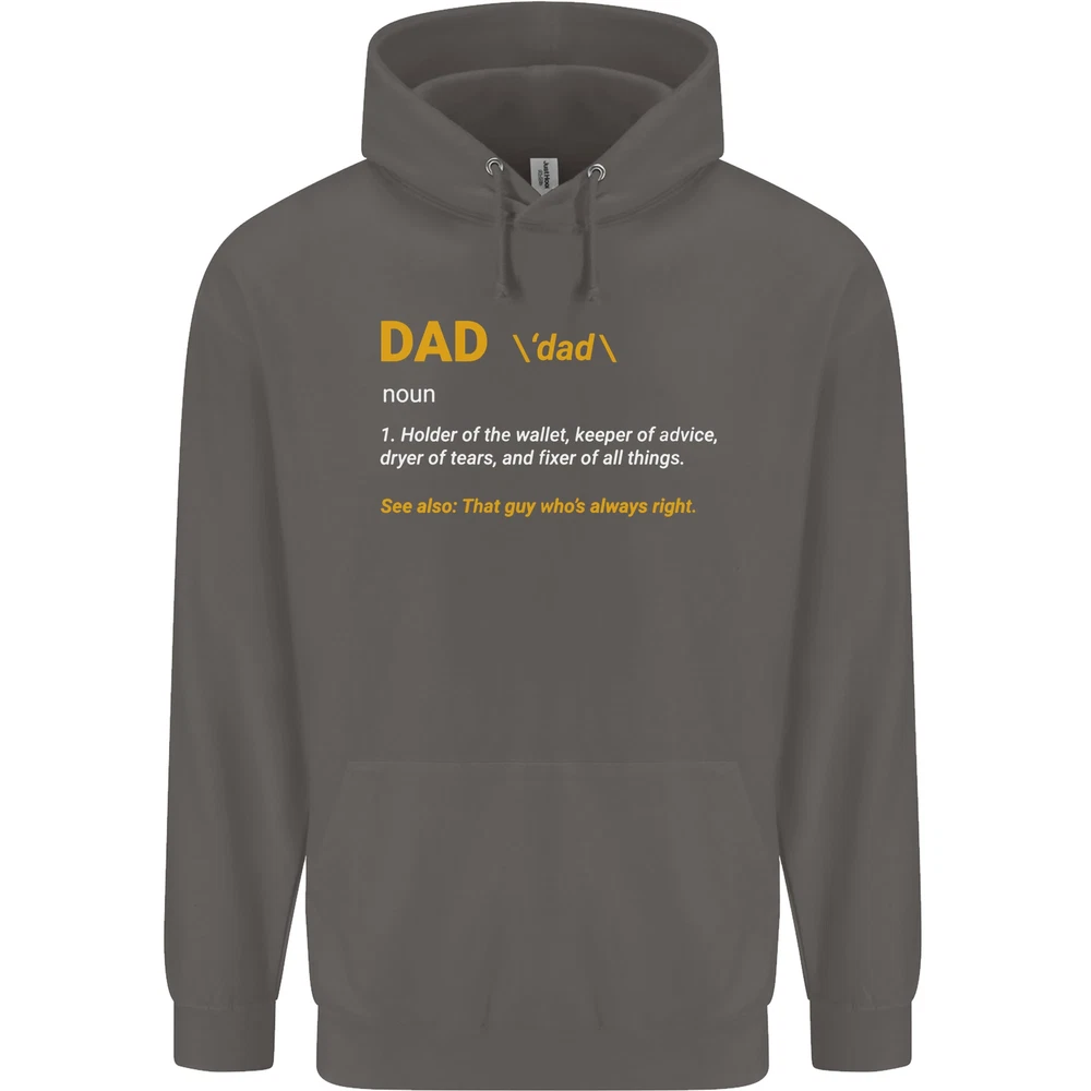 Dad Definition Funny Fathers Day Mens Hoodie None Training shoe with low-to-the-ground feel. Upper: Welded-TPU support overlays in the heel, toe cap and quarter. Dual mesh provides closed mesh in the lower quarter and breathable mesh throughout. Texture screened toe cap for protection. Description & Size Chart AWDis College Hoodie JH001 280gsm Twin needle stitching detailing Double fabric hood Self coloured cords Kangaroo pouch pocket with small hidden opening for ear phone cord feed Ribbed cuff and hem Soft cotton faced fabric creates ideal printing surface Worldwide Responsible Accredited Production (WRAP) certified production Printed with eco-friendly ink, which are safe to the skin and children. Alternative Styles This design (where appropriate), and many more like it, are available on the following styles: Best Selling Collections On the Darkside Birthdays Pets \ Animals Gym & Fitness Father's Day Sport Funny Biker Special Occasions Martial Arts LGBT Christmas Shipping All orders are shipped within one working day. Due to circumstances out or our control, or busy times of the year, this could be extended to two working days. Returns Returns are accepted within 60 days of delivery providing that the item is returned in the original condition and all tags are intact (where applicable) and has not been worn. Please ensure that the item is returned clean and free of pet hair. To return an item please use eBay's return system, which can be located by finding your order in your account and selecting the return option. eBay integration by