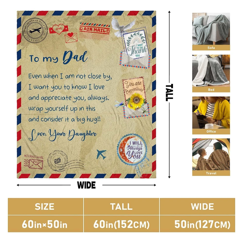 Exciting Offers Await! Check out our exclusive collection at unbeatable prices. Dad Gifts from Daughter, Birthday Gifts for Dad from Daughter, Dads Birthday Gifts Ideas Throw Blanket 60''x50'', Presents for Dad from Daughter, Father Bday Gifts from Daughter Product Overview These ultra-soft dad blankets make the perfect gift for a father from his daughter! Give your dad a Birthday, Christmas, or Father's Day gift he will cherish for years to come. Let your dad know how much you love him. KEY FEATURES: (1) Full-width printing, single-sided printing, clear printing (2) It's wrinkle and fade-resistant, doesn't shed, and is suitable for all seasons (3) The blanket is made of 100% polyester and does not contain any harmful dyes (4) Ultra-soft touch feeling and gentle against the skin superb (5) Can be used again and again PERFECT GIFT: The blankets are full of sincerity and love. Give the blankets to your dad as a Birthday, Father's day, Christmas, or Valentine's day gift, not only is it a perfect snuggling for the cold winter, but also an emotional connection. WARM ACCOMPANY: Whether your father is reading, watching the telly, lounging, or taking a nap, this comfortable and visually expressive blanket can help soothe his emotions, calm his soul, recharge his energy, and bring him the happiness he deserves. PERFECT COMPANION FOR YOUR LOVE: It's the best gift for your love Watching TV Reading book On couch On bed On chilly nights Main Features Celebrate The Reasons We Love Our Dads: Dads are the backbone of a family, encourage hard-working dads with words of blessing, and express your love for your dad with a beautiful blanket. The intent of these blankets is not only to bring warmth but also to bring smiles, courage, and a feeling of love. When your dad watches TV, reads a book, on the couch, on the bed, or on chilly nights, it's a perfect companion for your dad. EXCELLENT QUALITY: This dad gift blanket is made of premium flannel, which is warm, breathable, and lightweight. When your father uses this blanket, he will feel its softness and warmth. This dad blanket is specially designed for expressing love between you and your dad and it also features messages that scream how much you love your dad, and that he means the world to you. UNIQUE GIFTS FOR DAD: If you’re searching for a unique gift for your dad? Then look no further. Our blankets are just the perfect gift you're looking for. It’s not only great for relaxing at home, on the couch, or in bed but also ideal as a cover for camping chairs, sofas, or couches. This dad blanket can be an excellent gift for your dad on Father’s day, Birthday, Thanksgiving, Valentine’s day, Anniversary, Christmas, or when you are going somewhere far away from your dad. OCCASION: The dad blanket is the perfect modern home decor. Your papa can use it in the living room, sofa, bedroom, study room, office, car, dining room, or outdoor chair. Add some extra comfort to your father's afternoon naps and let him stay warm while he read a book or watches a favorite show. It's very suitable for indoor, outdoor, and travel use. EASY CARE: Machine washable and dryable for easy care. Wash alone or with similar texture/color items in cold on a gentle cycle, tumble dry low. This dad blanket is a gift you will be proud to give and a present he’ll cherish forever. Your gift will be a daily reminder of just how much he is loved. Payment Details ✔ Secure payments through eBay's system. ✔ We accept PayPal and all major credit cards. ✔ Payment must be completed immediately after purchase. ✔ For any payment issues, please contact our support team for assistance. Shipping Information ✔ Orders are shipped to the address provided at checkout. Please ensure it is correct. ✔ We process orders within 1 business day (excluding weekends and holidays). ✔ Delivery usually takes 3-5 business days. ✔ We use trusted carriers like UPS, FedEx, and USPS. ✔ Shipping is only available within the contiguous United States. No shipping to Alaska, Hawaii, Puerto Rico, or PO Boxes. ✔ Contact us if you experience any shipping delays. Return Policy ✔ We offer a 30-day return policy. ✔ If you are not satisfied with your purchase, you can return it within 30 days for a full refund. ✔ Contact us to get the return address before sending back any items. ✔ Items must be returned in their original condition and packaging.