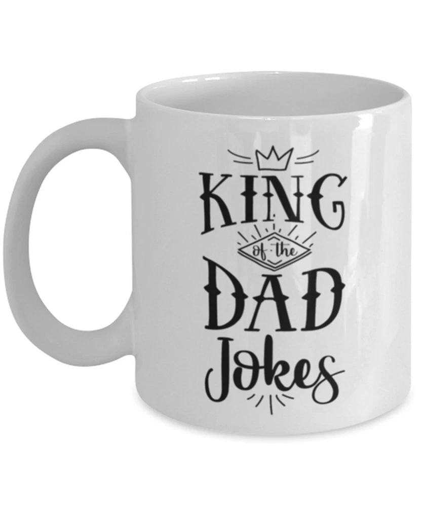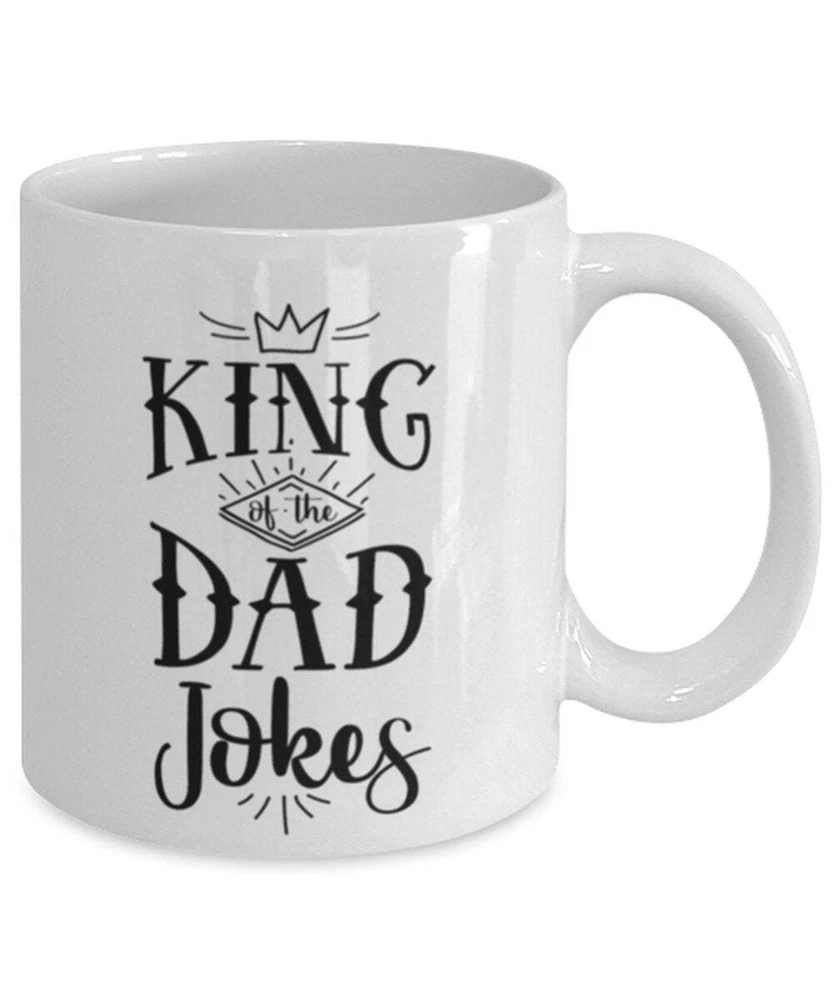 Dad Jokes Funny Coffee Mug King Of The Dad Jokes Father's Day Gift Mug For Dad Product Details.. This high quality 11oz. ceramic white mug has a premium hard coat that provides crisp and vibrant color reproduction sure to last for years. Perfect for all hot & cold beverages. The highest quality printing possible is used. It will never fade no matter how many times you wash it. Material: 100% Ceramic. Print both sides. Dishwasher and Microwave Safe. High Gloss + Premium White Finish. Printed in the U.S.A. Personalized & Custom. We support personalized and custom mug to add custom, when placing an order, you can add notes to the "order note" in shipping address section. Also you can contact us directly via message. Shipping Info. Ready to ship in 1 to 2 business days, All products are made-to-order and proudly printed in the United States. Shipped by USPS and DHL, You will receive your order in 5-7 days. Replace & Refund. All products are defective during shipping broken, chipped will be replaced free of charge. You are not satisfied with the product, we will refund 100% money to you. If any other issues arise, please do not hesitate to message, we would be more than happy to assist you.