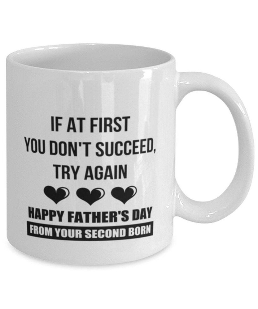 Dad Mug From Second Born Middle Child If At First You Don't Succeed Fathers Day Product Details.. This high quality 11oz. ceramic white mug has a premium hard coat that provides crisp and vibrant color reproduction sure to last for years. Perfect for all hot & cold beverages. The highest quality printing possible is used. It will never fade no matter how many times you wash it. Material: 100% Ceramic. Print both sides. Dishwasher and Microwave Safe. High Gloss + Premium White Finish. Printed in the U.S.A. Personalized & Custom. We support personalized and custom mug to add custom, when placing an order, you can add notes to the "order note" in shipping address section. Also you can contact us directly via message. Shipping Info. Ready to ship in 1 to 2 business days, All products are made-to-order and proudly printed in the United States. Shipped by USPS and DHL, You will receive your order in 5-7 days. Replace & Refund. All products are defective during shipping broken, chipped will be replaced free of charge. You are not satisfied with the product, we will refund 100% money to you. If any other issues arise, please do not hesitate to message, we would be more than happy to assist you.