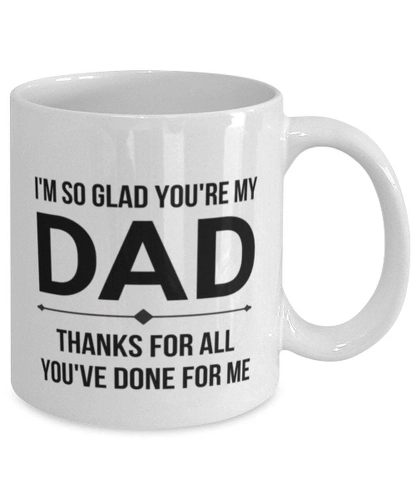 Dad Mug So Glad Thanks For All Father's Day Mug For Dad Dad Gift From Daughter Product Details.. This high quality 11oz. ceramic white mug has a premium hard coat that provides crisp and vibrant color reproduction sure to last for years. Perfect for all hot & cold beverages. The highest quality printing possible is used. It will never fade no matter how many times you wash it. Material: 100% Ceramic. Print both sides. Dishwasher and Microwave Safe. High Gloss + Premium White Finish. Printed in the U.S.A. Personalized & Custom. We support personalized and custom mug to add custom, when placing an order, you can add notes to the "order note" in shipping address section. Also you can contact us directly via message. Shipping Info. Ready to ship in 1 to 2 business days, All products are made-to-order and proudly printed in the United States. Shipped by USPS and DHL, You will receive your order in 5-7 days. Replace & Refund. All products are defective during shipping broken, chipped will be replaced free of charge. You are not satisfied with the product, we will refund 100% money to you. If any other issues arise, please do not hesitate to message, we would be more than happy to assist you.