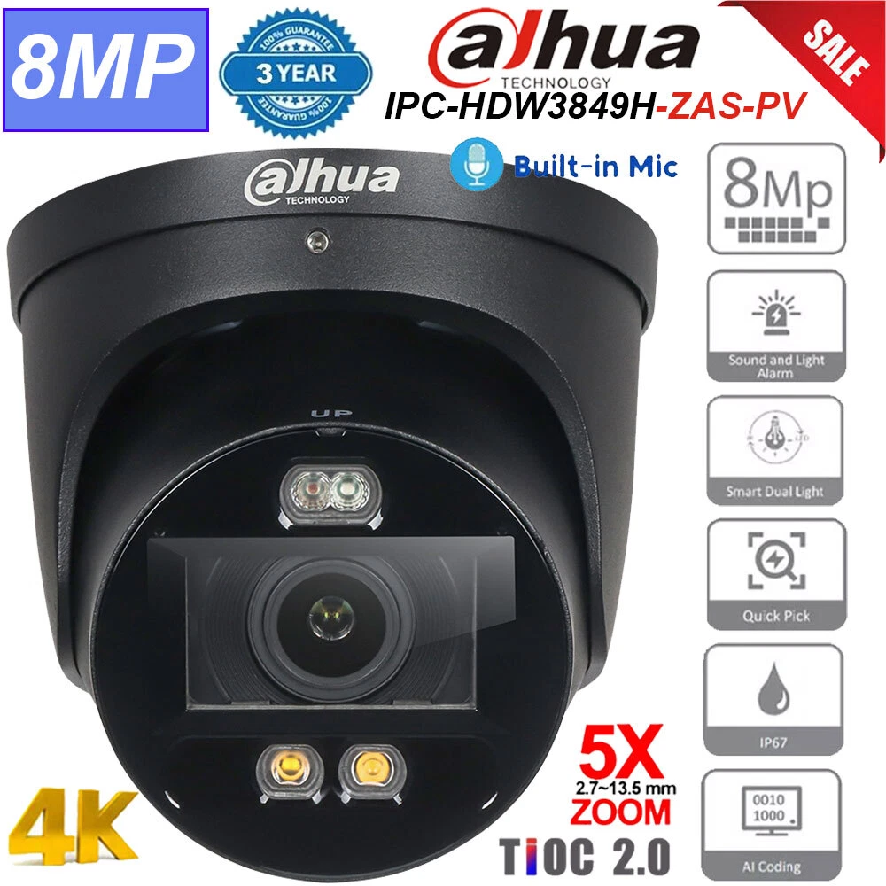 Product Description Features > 8-MP 1/2.8" CMOS image sensor, low luminance, and high definition image. > Outputs max. 8 MP (3840 × 2160)@25/30 fps. > H.265 codec, high compression rate, ultra-low bit rate. > Built-in warm light and IR LED; the max. IR illumination distance is 50 m and warm light distance is 40 m. > ROI, SMART H.264+/H.265+, AI H.264/H.265, flexible coding, applicable to various bandwidth and storage environments. > Rotation mode, WDR, 3D NR, HLC, BLC, digital watermarking, applicable to various monitoring scenes. > Intelligent monitoring: Intrusion, tripwire (the two function support the classification and accurate detection of vehicle and human). > Abnormality detection: Motion detection, privacy masking, scene changing, audio detection, no SD card, SD card full, SD card error, network disconnection, IP conflict, illegal access, and voltage detection. > Alarm: 1 in, 1 out; audio: 1 in, 1 out; supports max. 256 G Micro SD card; built-in dual Mic; built-in speaker; support two-way talk. > 12 VDC/PoE power supply. > IP67 protection. > Sound and light alarm (red and blue lights). > SMD 4.0. > One-tap arming/disarming through alarm input. System Overview With advanced deep learning algorithm, Dahua WizSense 3 Series network camera supports intelligent functions, such as perimeter protection and smart motion detection. In addition, with full-color technology, it provides a better image effect in the condition of low illuminance. Functions Siren and Light Active Deterrence Dahua siren and light active deterrence network camera supports the light alarm and voice alarm when perimeter event occurs, to realize the deterrence and effective intervention. The camera is built in multiple voices for selection, and supports customized voice importing. Smart Dual Light Dahua Smart Dual Light technology adopts smart algorithm to detect targets. Usually, the IR illuminator is on at night; when the target appears in the monitoring area, the warm light is on, and the camera records the full-color video and information of key events. That is, the camera links snapshot and video with full-color image. When the target is out of the monitoring area, the warm light is off and the IR illuminator is on, which reduces light pollution efficiently. SMD 4.0 Dahua Smart Motion Detection technology works with intelligent algorithms to classify targets that trigger motion detection alarms. It filters out objects that are not targets, such as small and large animals, to avoid triggering false alarms. With an AI NVR, Quick Pick technology becomes available, allowing you to easily search for and pick out human and vehicle targets from SMD event videos, prioritizing the highest matches. One-tap Disarming Dahua One-tap Disarming function, which is convenient and easy for operation, is the switch for event linkage. Customers can close and recover event linkage through mobile App, which meets multi-scenarios needs. Cyber Security Dahua network cameras employ a series of security technologies, including security authentication and authorization, access control protocols, trusted protection, encrypted transmission and encrypted storage. These technologies improve the camera's defense against external cyber threats and prevent malicious programs from compromising the device. Protection (IP67, wide voltage) IP67: The camera passes a series of strict test on dust and soak. It has dust-proof function, and the enclosure can works normal after soaking in 1 m deep water for 30 minutes. Wide voltage: The camera allows ±30% input voltage tolerance (wide voltage range), and it is widely applied to outdoor environment with instable voltage. Specifications Camera Image Sensor 1/2.8" CMOS Max. Resolution 3840 (H) × 2160 (V) ROM 128 MB RAM 512 MB Scanning System Progressive Electronic Shutter Speed Auto/Manual 1/3 s–1/100,000 s Min. Illumination 0.004 lux@F1.0 (Color, 30 IRE) 0.0004 lux@F1.0 (B/W, 30 IRE) 0 lux (illuminator on) S/N Ratio ﹥ 56 dB Illumination Distance Up to 50 m (164.04 ft) (IR) Up to 40 m (131.23 ft) (warm light) Illuminator On/Off Control Auto; manual Illuminator Number 2 (IR LED) 2 (warm light) Angle Adjustment Pan: 0°–360° Tilt: 0°–78° Rotation: 0°–360° Lens Lens Type Motorized vari-focal Mount Type φ16 Focal Length 2.7 mm–13.5 mm Field of View H: 108°–34° V: 56°–19° D: 130°–39° Iris Type Fixed Close Focus Distance 1.5 m (4.92 ft) DORI Distance Lens Detect Observe Recognize Identify W 89.9 m (294.95 ft) 36.0 m (118.11 ft) 18.0 m (59.06 ft) 9.0 m (29.53 ft) T 257.4 m (844.49 ft) 103.0 m (337.93 ft) 51.5 m (168.96 ft) 25.7 m (84.32 ft) Intelligent IVS (Perimeter Protection) Tripwire; intrusion (Support the classification and accurate detection of vehicle and human) SMD 4.0 Less false alarm, longer detection distance Smart Search Work together with Smart NVR to perform refine intelligent search, event extraction and merging to event videos. Quick Pick With AI NVR, quickly pick up the human/vehicle targets that users are interested in from SMD events AI SSA Adopt deep learning algorithms to adjust the parameters of the image to suit the conditions. Video Video Compression H.265; H.264; H.264H; H.264B; MJPEG (Only supported by the sub stream) Smart Codec Smart H.265+; Smart H.264+ AI Coding AI H.265; AI H.264 Video Frame Rate Main stream: 3840 × 2160@(1 fps–30 fps) Sub stream: 704 × 576@(1 fps–25 fps)/704 × 480@(1 fps–30 fps) Third stream: 1920 × 1080@(1 fps–30 fps) *The values above are the max. frame rates of each stream; for multiple streams, the values will be subjected to the total encoding capacity. Stream Capability 3 streams Resolution 8M (3840 × 2160); 6M (3072 × 2048); 5M (3072 × 1728/2592 × 1944); 4M (2688 × 1520/2560 × 1440); 3M (2048 × 1536/2304 × 1296); 1080p (1920 × 1080); 1.3M (1280 × 960); 720p (1280 × 720); D1 (704 × 576/704 × 480); VGA (640 × 480); CIF (352 × 288/352 × 240) Bit Rate Control CBR/VBR Video Bit Rate H.264: 32 kbps–16