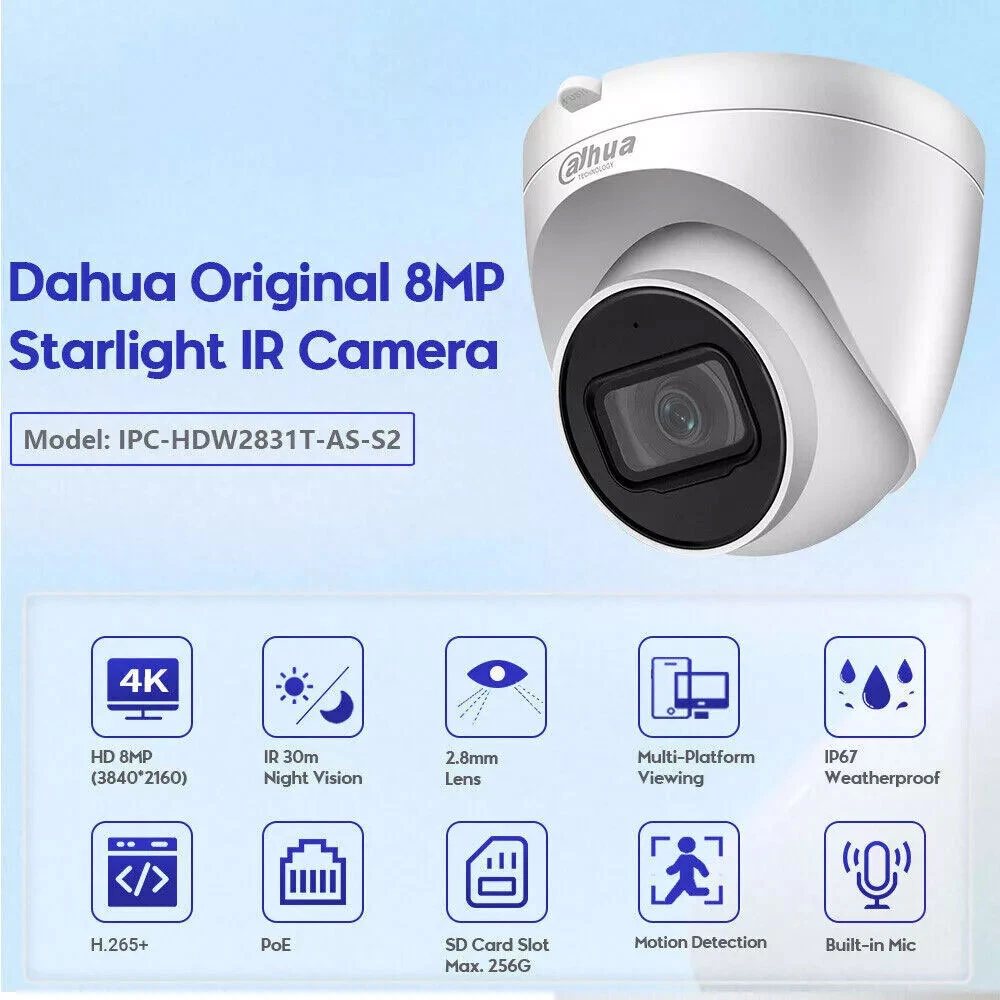 Dahua 8MP Starlight MIC IPC-HDW2831T-AS-S2 POE Turret IR30m IP Camera IVS IP67
