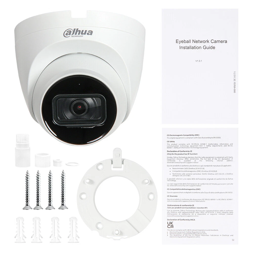 Color: White/Black Power: PoE or DC12V MPN: Does not apply Battery Included: No Connectivity: Wired Smart Home Protocol: Infrared Type: Surveillance Eyeball Camera Smart Home Compatibility: Dahua DMSS APP Surveillance Technology: IP/Network Compatible Brand: Dahua Storage Capacity: support max. 256 GB Brand: Dahua Maximum Resolution: 8MP (3840 × 2160) @15 fps Number of Cameras Included: 1 Location: Indoor/Outdoor Features: 1/2.7" CMOS image sensor, Built-in IR LED, built-in MIC, H.265 codec, high compression rate, Intelligent Video analysis (IVS), IP67 protection, max IR distance: 30 m, Night Vision, Smart Codec (H.265+ & H.264+), ultra-low bit rate, Waterproof Operating Sound Rating: N/A Color Mode: Color Day, B&W Night Model: IPC-HDW2831T-AS-S2
