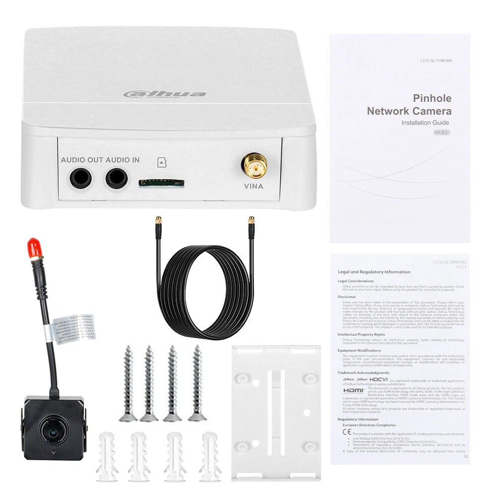 Product Description 4MP Covert Pinhole WizMind Network Camera-KIT Features: > Starlight 4MP 1/2.7" CMOS image sensor, excellent low luminance performance and high definition of images > Outputs max. 4MP (2688 × 1520)@25/30 fps. > H.265 codec, high compression ratio, and ultra-low bit rate. > ROI, SMART H.264 +/H.265+, flexible coding, applicable to various bandwidth and storage environments > Rotation mode, WDR, 3D NR, HLC, BLC, digital watermarking, applicable to various monitoring scenes > Intelligent detection: Intrusion, tripwire, fast moving (the three functions support the classification and accurate detection of vehicle and human); abandoned object, missing object, loitering detection, people gathering, and face detection > Abnormality detection: Motion detection, privacy masking, scene changing, audio detection, no SD card, SD card space warning, SD card error, network disconnection, IP conflict, illegal access, and voltage detection > Alarm: 2 in, 2 out; audio: 1 in, 1 out; RS-232; max. 256 G Micro SD card. > 12V DC/PoE power supply facilitates installation. > Power on after connecting the lens to the back-end device; otherwise the device might be damaged. Specifications: Camera Image Sensor 1/2.7” CMOS Max. Resolution 2688 (H) × 1520(V) ROM 128 MB RAM 1 GB Scanning System Progressive Electronic Shutter Speed Auto/Manual 1/3 s–1/100,000 s Min. Illumination 0.005 Lux@F2.0 (Color,30 IRE) 0.0005 Lux@F2.0 (B/W,30 IRE) S/N Ratio > 56 dB Lens Lens Type Fixed-focal Lens Mount M12 Focal Length 2.8 mm Max. Aperture 2.8 mm: F2.0 Field of View Horizontal: 101°; Vertical: 57°; Diagonal: 115° Iris Control Fixed Close Focus Distance 0.8 m DORI Distance Len Detect Observe Recognize Identify IPC- HUM8441- L4 61 m (200.1 ft) 24.4 m (80.1 ft) 12.2 m (40.0 ft) 6.1 m (20.0 ft) Intelligence IVS (Perimeter Protection) Tripwire, intrusion, fast moving (the three functions support the classification and accurate detection of vehicle and human); loitering detection, people gathering, and parking detection Face Detection Face detection; track; snapshot; snapshot optimization; optimal face snapshot upload; face enhancement; face exposure; face attribute extraction including 6 attributes (gender, age, glasses, expressions, mask and beard) and 8 expressions (anger, calm, happiness, sadness, disgust, surprise, confusion and fear); face snapshot set as face or one-inch photo; 3 snapshot strategies (real-time snapshot, optimization snapshot, and quality priority); face angle filter; optimization time setting Smart Search Work together with Smart NVR to perform refine intelligent search, event extraction and merging to event videos Video Video Compression H.265; H.264; H.264H; H.264B; MJPEG (only supported by the sub stream) Smart Codec Smart H.265+ Smart H.264+ Video Frame Rate Main stream: 2688 × 1520 @25/30 fps Sub stream: 704 × 576 @25 fps; 704 × 480 @30 fps Third stream: 1920 × 1080 @25/30 fps Stream Capability 3 streams Resolution 4M (2688 × 1520); 3.6M (2560 × 1440); 3M (2048 × 1536);1080p (1920 × 1080); 960p (1280 × 960); 720p (1280 × 720); D1 (704 × 576/704 × 480); CIF (352 × 288/352 × 240); VGA (640 × 480) Bit Rate Control CBR/VBR Video Bit Rate H.264: 3 kbps–20480 kbps H.265: 3 kbps–20480 kbps Day/Night Color/B/W BLC Yes HLC Yes WDR 120 dB Scene Self-adaptation (SSA) Yes White Balance Auto; natural; street lamp; outdoor; manual; regional custom Gain Control Manual; auto Noise Reduction 3D NR Motion Detection OFF/ON (4 areas, rectangular) Region of Interest (RoI) Yes (4 areas) Defog Yes Image Rotation 0°/90°/180°/270° (Support 90°/270° with 1080p resolution and lower) Mirror Yes Privacy Masking 4 areas Audio Audio Compression G.711a; G.711Mu; PCM; G.726; G.723 Alarm Alarm Event No SD card, SD card full, SD card error, network disconnection, IP conflict, illegal access, motion detection, video tampering, tripwire, intrusion, fast moving, missing object, abandoned object, parking detection, loitering detection, people gathering; scene changing, audio detection, voltage detection, external alarm, face detection , and security exception Network Network Port RJ-45 (10/100 Base-T) SDK and API Yes Network Protocol IPv4; IPv6; HTTP;TCP; UDP; ARP; RTP; RTSP; RTCP; RTMP; SMTP; FTP; SFTP; DHCP; DNS; DDNS; QoS; UPnP; NTP; Multicast; ICMP; IGMP; NFS; SAMBA; PPPoE; SNMP Interoperability ONVIF (Profile S/Profile G/Profile T); CGI; P2P; Milestone; Genetec User/Host 20 (Total bandwidth: 64 M) Storage FTP; SFTP; Micro SD card (support max. 256 G); NAS Browser IE: IE8, IE9, and IE11 Chrome Firefox Management Software Smart PSS; DSS; DMSS Mobile Client IOS; Android Cyber Security Video encryption; Firmware encryption; Configuration encryption; Digest; WSSE; Account lockout; Security logs; IP/MAC filtering; Generation and importing of X.509 certification; syslog; HTTPS; 802.1x; Trusted boot; Trusted execution; Trusted upgrade Certification Certifications CE-LVD:EN62368-1; CE-EMC:Electromagnetic Compatibility Directive 2014/30/EU; FCC:47 CFR FCC Part 15, Subpart B Port Audio Input 1 channel (3.5 mm JACK port) Audio Output 1 channel (3.5 mm JACK port) Alarm Input 2 channels in: 5 mA 3V–5V DC Alarm Output 2 channels out: 1,000 mA 30V DC/500mA 50V DC Power Power Supply 12V DC/PoE (802.3af) Power Consumption Basic: 2.4W (12V DC); 3W (PoE) Max. (Intelligence + WDR): 3.9W (12V DC); 4.8W (PoE) Environment Operating Temperature –40°C to +60°C (–40°F to 140°F) Operating Humidity ≤95% Storage Temperature –40°C to +60°C (–40°F to 140°F) Structure Casing Metal Product Dimensions E1: 110 mm × 83 mm × 24 mm (4.33" × 3.27" × 0.94") L4: 35 mm × 35 mm × 26.7 mm (1.38" × 1.38" × 1.05") Net Weight 210 g (0.5 lb) Gross Weight 376 g (0.8 lb) Shipping & Handling: 1. Item will be shipped out within 5 business days after the payment. Please check and make sure your address is correct before payment. (In order to make sure you can receive the items successfully, please provide your phon