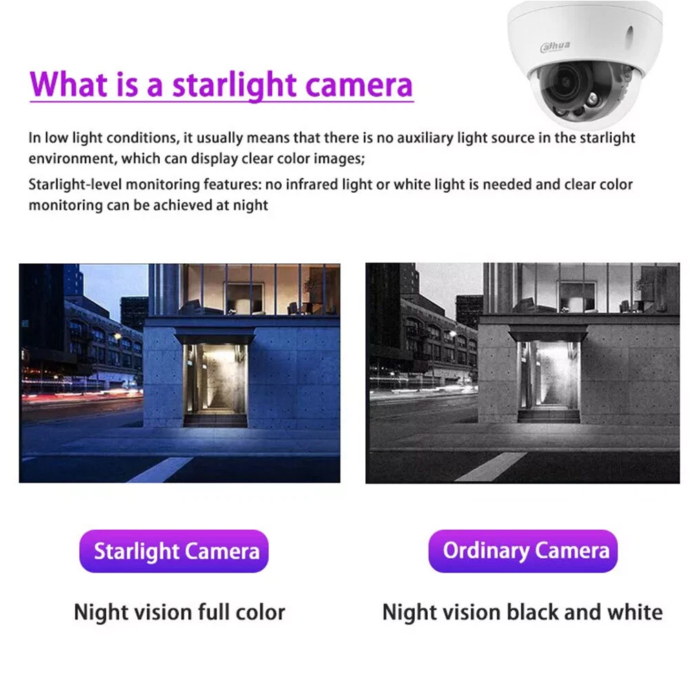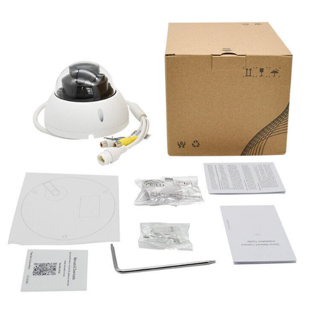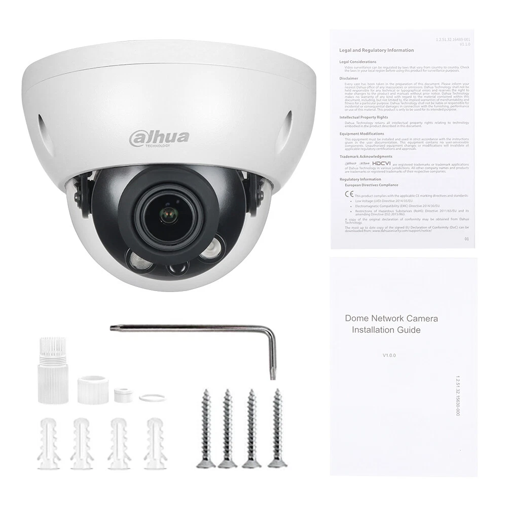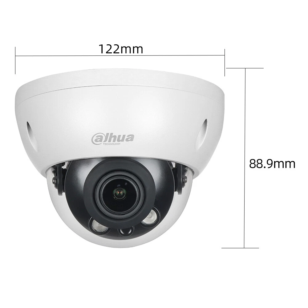 Product Description 8MP Lite IR Vari-focal Dome Network Camera Features: > 8MP, 1/2.7" CMOS image sensor, low illuminance, high image definition > Outputs max. 8MP (3840 × 2160) @15 fps, and supports 2688×1520 @25/30 fps > H.265 codec, high compression rate, ultra-low bit rate > Built-in IR LED, max IR distance: 60 m > ROI, SMART H.264+/H.265+, flexible coding, applicable to various bandwidth and storage environments > Rotation mode, WDR, 3D NR, HLC, BLC, digital watermarking, applicable to various monitoring scenes > Intelligent detection: Intrusion, tripwire > Abnormality detection: Motion detection, video tampering, no SD card, SD card full, SD card error, network disconnection, IP conflict, illegal ac- cess, local alarm, voltage detection,audio abnormal > Alarm: 1 in, 1 out; audio: 1 in, 1 out; supports max. 256 GB Micro SD card > 12V DC/POE power supply > IP67, IK10 protection Specifications: Camera Image Sensor 1/2.7” 8Megapixel progressive CMOS Max. Resolution 3840 (H) × 2160 (V) ROM 128 MB RAM 256 MB Scanning System Progressive Electronic Shutter Speed Auto/Manual 1/3 s–1/100,000 s Min. Illumination 0.008 Lux@F1.5 S/N Ratio > 56 dB Illumination Distance 40 m (131.2 ft) Illuminator On/Off Control Auto/Manual Illuminator Number 2 (IR LED) Pan/Tilt/Rotation Range Pan: 0°–355° Tilt: 0°–67° Rotation: 0°–355° Lens Lens Type Motorized vari-focal Mount Type φ14 Focal Length 2.7 mm–13.5 mm Max. Aperture F1.5 Field of View Pan: 113°–31° Tilt: 58°–17° Diagonal: 138°–36° Iris Type Fixed Close Focus Distance 0.8m–0.8m (2.62 ft–2.62 ft) DORI Distance Lens Detect Observe Recognize Identify W 85.3 m (279.9 ft) 34.1 m (111.9 ft) 17 m (55.8 ft) 8.5 m (27.9 ft) T 280 m (918.6 ft) 112 m (367.5 ft) 56 m (183.7 ft) 28 m (91.9 ft) Smart Event IVS Tripwire; intrusion Video Video Compression H.265; H.264; H.264B; MJPEG (only supported by the sub stream) Smart Codec Smart H.265+/ Smart H.264+ Video Frame Rate Main stream: 3840 × 2160 (1 fps–15 fps) 2688 × 1520 (1 fps–25/30 fps) Sub stream: 704 × 576 (1 fps–25 fps) 704 × 480 (1 fps–30 fps) Stream Capability 2 streams Resolution 3840 × 2160 (3840 × 2160); 3072 × 2048 (3072 × 2048); 3072 ×1728 (3072 × 1728); 2592 × 1944 (2592 × 1944); 2688 × 1520 (2688 × 1520); 3M (2048 × 1536); 2304 × 1296 (2304 × 1296); 1080p (1920 × 1080); 1.3M (1280 × 960); 720p (1280 × 720); D1 (704 × 576/704 × 480); VGA (640 × 480); CIF (352 × 288/352 × 240) Bit Rate Control CBR/VBR Video Bit Rate H.264: 32 kbps–8192 kbps H.265: 12 kbps–8192 kbps Day/Night Auto(ICR)/Color/B/W BLC Yes HLC Yes WDR 120 dB White Balance Auto/natural/street lamp/outdoor/manual/regional custom Gain Control Auto/Manual Noise Reduction 3D NR Motion Detection OFF/ON (4 areas, rectangular) Region of Interest(RoI) Yes (4 areas) Smart Illumination Yes Image Rotation 0°/90°/180°/270° (Supports 90°/270° with 3840 × 2160 resolution and lower.) Mirror Yes Privacy Masking 4 areas Audio Audio Compression G.711a; G.711Mu; G.726 Alarm Alarm Event No SD card; SD card full; SD card error; network disconnection; IP conflict; motion detection; video tampering; tripwire; intrusion; illegal access; voltage detection; audio detection; safety exception; local alarm Network Network RJ-45 (10/100 Base-T) SDK and API Yes Cyber Security Video encryption; firmware encryption; configuration encryption; Digest; WSSE; account lockout; security logs; IP/MAC filtering; generation and importing of X.509 certification; syslog; HTTPS; 802.1x; trusted boot; trusted execution; trusted upgrade Protocol IPv4; IPv6; HTTP; TCP; UDP; ARP; RTP ; RTSP; RTCP; RTMP; SMTP; FTP; SFTP; DHCP; DNS; DDNS; QoS; UPnP; NTP; Multicast; ICMP; IGMP; NFS; PPPoE; Bonjour Interoperability ONVIF(Profile S/Profile G/Profile T); CGI; P2P; Milestone; Genetec User/Host 20 Storage FTP; SFTP; Micro SD Card (support max. 256 GB); NAS Browser IE Chrome Firefox Management Software Smart PSS; DSS; DMSS Mobile Phone IOS; Android Certification Certifications CE-LVD: EN62368-1 CE-EMC: Electromagnetic Compatibility Directive 2014/30/EU FCC: 47 CFR FCC Part 15, Subpart B UL/CUL: UL60950-1 CAN/CSA C22.2 No.60950-1-07 Port Audio Input 1 channel (RCA port) Audio Output 1 channel (RCA port) Alarm Input 1 channel In: 5mA 5V DC Alarm Output 1 channel Out: 300mA 12V DC Power Power Supply 12V DC/PoE (802.3af) Power Consumption < 7.4W Environment Operating Conditions –30°C to +60°C (–22°F to +140°F)/less than ≤ 95% RH Storage Temperature –40°C to +60°C (–40°F to +140°F) Protection IP67; IK10 Structure Casing Metal Dimensions Φ122 mm × 88.9 mm (Φ4.80" × 3.50") Net Weight 0.47 kg (1.1 lb) Gross Weight 0.63 kg (1.4 lb) Shipping & Handling: Warranty & Return Policy: Feedback & About Us: About Customs duty/Tax: 1. Item will be shipped out within 5 business days after the payment. Please check and make sure your address is correct before payment. (In order to make sure you can receive the items successfully, please provide your phone number as well.) 2. The items will be shipped via Post Office Airmail. It usually takes around 2 to 3 weeks to United Stated, United Kingdom, Australia, Canada and some European countries. But for other countries, it may need 4-6 weeks to deliver the parcel. It may take longer time if there is abnormal weather condition or customs control issue. Please kindly contact us for refund or assistance if the item doesn’t receive during the time. (If you want a faster service, please contact us before your bidding or purchase.) 3. Please contact us for further assistance if you don't receive the item on time. (Before opening up any "Item not received" dispute/claim, please contact us for a full refund if you don't get the package 35 days after your cleared payment.) 1. All items will be tested or checked carefully and packaged in good condition before sending out to you. Some faulty items might happen especially after overseas transportation. We offer a replacement warrant