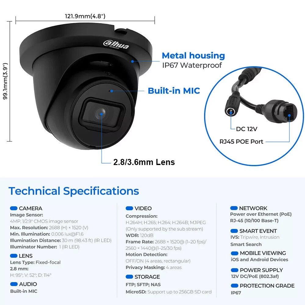 Dahua Wizsense IPC-HDW2441TM-S 4MP PoE IP Camera Built-in Mic Audio IR outdoor