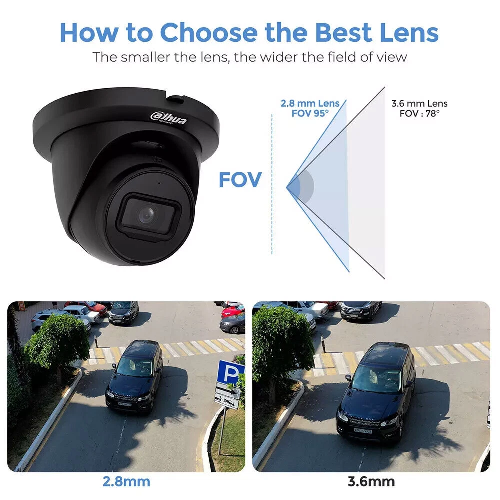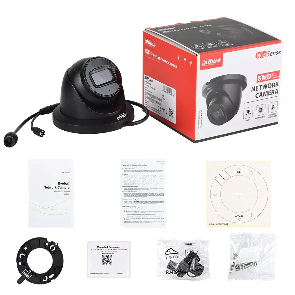 Product Description 4MP IR Fixed-focal Eyeball WizSense Network Camera > 4-MP 1/2.9" CMOS image sensor, low luminance, and high definition image. > Outputs max. 4 MP (2688 × 1520) 20 fps, and supports 2560 × 1440 25/30 fps. > H.265 codec, high compression rate, ultra-low bit rate. > Built-in IR LED, and the max. illumination distance is 30 m. > ROI, SMART H.264 +/H.265+, flexible coding, applicable to various bandwidth and storage environments. > Rotation mode, WDR, 3D NR, HLC, BLC, digital watermarking, applicable to various monitoring scenes. > Intelligent monitoring: Intrusion, tripwire (the two functions support the classification and accurate detection of vehicle and human) > Supports max. 256 G Micro SD card; built in MIC. > 12 VDC/PoE power supply. > IP67 protection. > SMD Plus. Camera Image Sensor 1/2.9" CMOS Max. Resolution 2688 (H) × 1520 (V) ROM 128 MB RAM 128 MB Scanning System Progressive Electronic Shutter Speed Auto/Manual 1/3 s–1/100,000 s Min. Illumination 0.006 lux F1.6 (Color, 30IRE) 0.0006 lux F1.6 (B/W, 30IRE) 0 lux (Illuminator on) S/N Ratio >56 dB Illumination Distance 30 m (98.43 ft) (IR LED) Illuminator On/Off Control Auto; manual Illuminator Number 1 (IR LED) Pan/Tilt/Rotation Range Pan: 0°–360° Tilt: 0°–78° Rotation: 0°–360° Lens Lens Type Fixed-focal Lens Mount M12 Focal Length 2.8 mm; 3.6 mm Max. Aperture F1.6 Field of View 2.8 mm: H: 95°; V: 52°; D: 114° 3.6 mm: H: 78°; V: 41°; D: 94° Iris Control Fixed Close Focus Distance 2.8 mm: 0.9 m (2.95 ft) 3.6 mm: 1.6 m (5.25 ft) DORI Distance Lens Detect Observe Recognize Identify 2.8 mm 63.6 m (208.66 ft) 25.4 m (83.33 ft) 12.7 m (41.67 ft) 6.4 m (20.99 ft) 3.6 mm 85.4 m (280.18 ft) 34.2 m (112.20 ft) 17.1 m (56.10 ft) 8.5 m (27.89 ft) DORI (Detect, Observe, Recognize, Identify) is a standard system (EN-62676-4) for defining the ability of a person viewing the video to distinguish persons or objects within a covered area. The numbers in this table do not reflect intelligent function distances. For intelligent function distances, refer to installation and commissioning manual/project design tool. Intelligence IVS (Perimeter Protection) Intrusion, tripwire (the two functions support the classification and accurate detection of vehicle and human) Smart Search Work together with Smart NVR to perform refine intelligent search, event extraction and merging to event videos Video Video Compression H.264H; H.265; H.264; H.264B; MJPEG (Only supported by the sub stream) Smart Codec Smart H.265+; Smart H.264+ Video Frame Rate Main stream: 2688 × 1520 (1–20 fps)/2560 × 1440 (1–25/30 fps) Sub stream: 704 × 576 (1–25 fps)/704 × 480 (1–30 fps) *The values above are the max. frame rates of each stream; for multiple streams, the values will be subjected to the total encoding capacity. Stream Capability 2 streams Resolution 4M (2688 × 1520); 4M (2560 × 1440); 3M (2304 × 1296); 1080p (1920 × 1080); 1.3M (1280 × 960); 720p (1280 × 720); D1 (704 × 576/704 × 480); VGA (640 × 480); CIF (352 × 288/352 × 240) Bit Rate Control CBR/VBR Video Bit Rate H.264: 32 kbps–6144 kbps H.265: 12 kbps–6144 kbps Day/Night Auto (ICR)/Color/B/W BLC Yes HLC Yes WDR 120 dB White Balance Auto; natural; street lamp; outdoor; manual; regional custom Gain Control Auto; manual Noise Reduction 3D NR Motion Detection OFF/ON (4 areas, rectangular) Region of Interest (RoI) Yes (4 areas) Image Rotation 0°/90°/180°/270°(Support 90°/270° with 2688 × 1520 resolution and lower) Mirror Yes Privacy Masking 4 areas Audio Built-in MIC Yes Audio Compression G.711a; G.711Mu; PCM; G.726 Alarm Alarm Event No SD card; SD card full; SD card error; network disconnecton; IP conflict; illegal access; moton detecton; video tampering; tripwire; intrusion; SMD; voltage detecton; security excepton Network Network Port RJ-45 (10/100 Base-T) SDK and API Yes Network Protocol IPv4; IPv6; HTTP; TCP; UDP; ARP; RTP; RTSP; RTCP; RTMP; SMTP; FTP; SFTP; DHCP; DNS; DDNS; NTP; Multicast; ICMP; IGMP; P2P Interoperability ONVIF (Profile S/Profile G/Profile T); CGI User/Host 6 (Total bandwidth: 36 M) Storage FTP; SFTP; Micro SD card (support max. 256 GB) Browser IE Chrome Firefox Management Software DSS; DMSS Mobile Client iOS; Android Cyber Security Configuration encryption;Trusted execution;Digest;Security logs;WSSE;Account lockout;syslog;Video encryption;802.1x;IP/MAC filtering;HTTPS;Trusted upgrade;Trusted boot;Generation and importing of X.509 certification Certification Certifications CE-LVD: EN62368-1; CE-EMC: Electromagnetic Compatibility Directive 2014/30/EU; FCC: 47 CFR FCC Part 15, Subpart B; UL/CUL: UL62368-1 & CAN/CSA C22.2 No. 62368-1-14 Power Power Supply 12 VDC/PoE (802.3af) Power Consumption Basic: 2.5 W (12 VDC); 3.3 W (PoE); Max. (ICR + H.265 + max. resolution + main stream + IR intensity + WDR + IVS): 4.2 W (12 VDC); 5.1 W (PoE) Environment Operating Temperature –40 °C to +60 °C (–40 °F to +140 °F) Operating Humidity ≤95% Storage Temperature –40 °C to +60 °C (–40 °F to +140 °F) Protection IP67 Structure Casing Material Inner core: Metal Cover: Metal Decoration ring: Plastic Product Dimensions 99.1 mm × Φ121.9 mm (3.90" × Φ4.80") Net Weight 0.48 kg (1.06 lb) Gross Weight 0.68 kg (1.5 lb) Shipping & Handling: Warranty & Return Policy: Feedback & About Us: About Customs duty/Tax: 1. Item will be shipped out within 5 business days after the payment. Please check and make sure your address is correct before payment. (In order to make sure you can receive the items successfully, please provide your phone number as well.) 2. The items will be shipped via Post Office Airmail. It usually takes around 2 to 3 weeks to United Stated, United Kingdom, Australia, Canada and some European countries. But for other countries, it may need 4-6 weeks to deliver the parcel. It may take longer time if there is abnormal weather condition or customs control issue. Please kindly contact us for refund or assistance if the item doesn