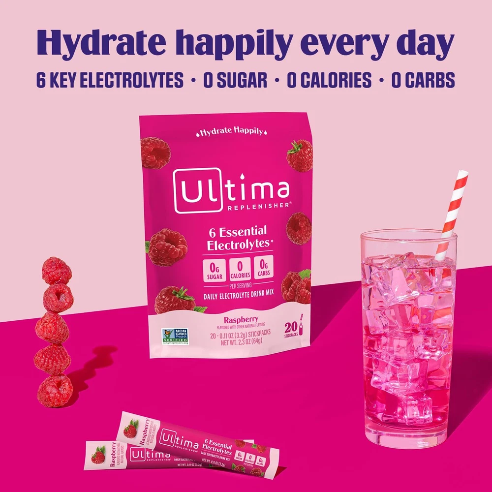 Daily Electrolyte Drink Mix – Raspberry, 20 Stickpacks – Hydration Packets with 6 Key Electrolytes & Trace Minerals – Keto Friendly, Vegan, Non-GMO & Sugar-Free Electrolyte Powder Hydrate happily: Ultima electrolytes powder delivers everyday hydration packed with 6 key electrolytes, vitamin C, zinc and delicious plant-based flavors; Ultima electrolytes provide enhanced hydration with 0 sugar, calories or carbs Naturally delicious: Electrolyte drink mix made with 6 key electrolytes - magnesium, calcium, potassium, chloride, phosphorus and sodium, as well as vitamin C and zinc; naturally sweetened with organic stevia leaf and infused with real fruit flavors What’s inside: Our daily electrolyte drink mix replenishes your electrolyte levels without the sugar, calories or artificial sweeteners; sugar free, gluten free, vegan, keto friendly and Non-GMO Take it with you: This 20-serving pack of our electrolyte powder packets is perfect for on the go and exploring different flavors; simply add 1 stickpack to 16 ounces of water and shake or stir well, then add ice if you’d like it cold The Ultima difference: We’ve spent over 25 years taking electrolyte hydration to a delicious new level; you deserve balanced hydration to replenish your body while you’re living your ultimate life, every day Shipping We offer FREE shipping on all orders! We ship within Three business days of payment, usually sooner. We use a selection of shipping services such as UPS, FedEx, USPS etc. We only ship to the lower 48 states, no APO/FPO addresses or PO Boxes allowed. Local pickups and combined shipping options are not provided at this time. Return You can return a product for up to 30 days from the date you purchased it. Any product you return must be in the same condition you received it and in the original packaging. Please keep the receipt. Payment We accept payment by any of the following methods: PayPal Please pay as soon as possible after winning an auction, as that will allow us to post your item to you sooner! Feedback Customer satisfaction is very important to us. If you have any problem with your order, please contact us and we will do our best to make you satisfied. Contact Us If you have any queries, please contact us via ebay. We usually respond within 24 hours on weekdays. Please visit our eBay store to check out other items for sale! Thank you for shopping at our store.