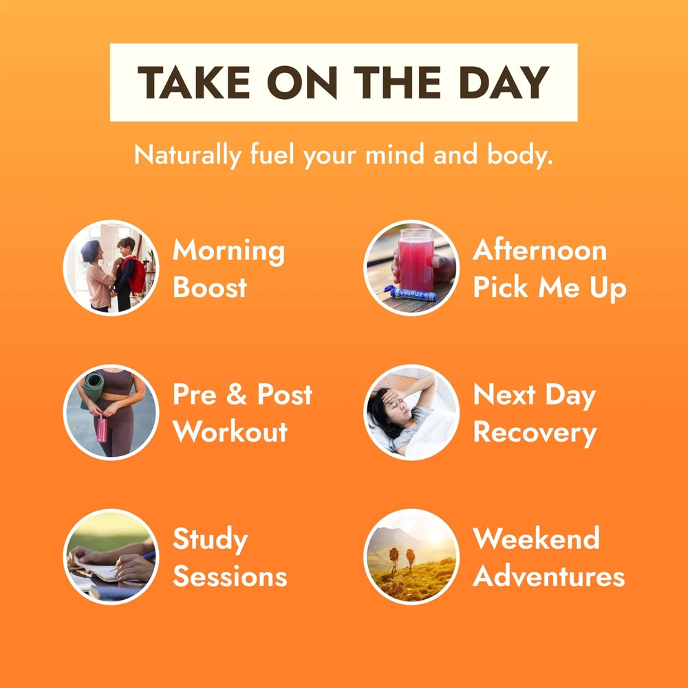 is a sugar-free energy powder packet with natural ingredients and great flavor, making it a healthy alternative to sugary sports drinks, coffee, soda, and more. Each packet provides 4-6 hours of sustained energy with 100mg of natural caffeine and is packed with essential daily nutrients like B12, B6, C, Calcium, Folate, Niacin, and Antioxidants. To Use: Fill 16-20 fl oz of cold water into a bottle, pour in one tube of Energy Powder, shake & enjoy! Drink 15-30 minutes prior to exercise for increased performance. 3-in-1 Daily Functional Beverage – Energy Drink Powder combines natural ingredients to deliver sustained energy, liquid electrolytes, and immunity support in one sugar-free, low-carb, and low-calorie daily bubbly beverage. Refreshing Lemon Iced Tea Flavor – Experience a perfect balance of refreshing lemon and smooth iced tea for a light and refreshing taste. Simply add powder to 16-20 ounces of water or other non-carbonated beverage, shake, and enjoy! Packed with and Natural Electrolytes – Our comprehensive formula contains 100% of recommended daily in two tubes, including 500mg of C, 950mg of Potassium, 2500mcg of B12, and 105mg of Magnesium. Zero sugar, no artificial flavors or colors, no preservatives, and gluten free. Convenient and Portable for On-The-Go – From replacing your morning coffee to providing essential post-workout hydration and nutrients, ’s single-serving hydration sticks are great for traveling and busy schedules. 100% Happiness – We pride ourselves on using healthy, natural ingredients to deliver high-quality taste, nutrition, energy, and hydration. Whether you're an athlete pushing the boundaries of physical performance, a professional striving for success, or a student pursuing academic excellence, is your trusted companion on the journey to greatness.