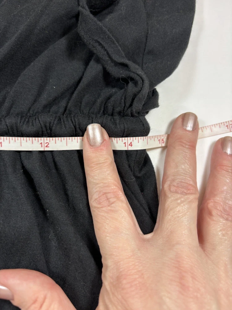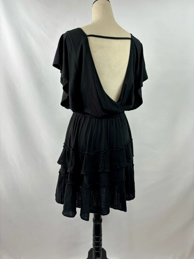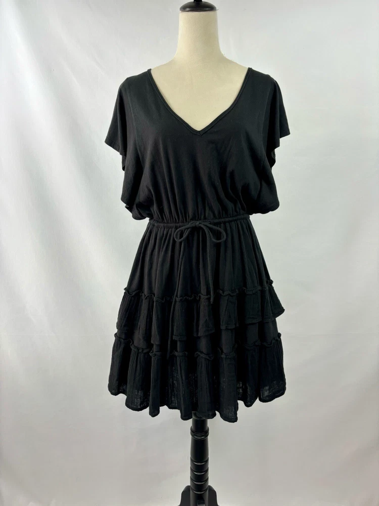 Daily Practice Anthropologie Dress Black Small New Tiered Ruffled Flutter Sleeve Low Back Crinkled fabric ruffles mixed with knit cotton Fabric Content - Woven: 100% cotton, Knitted: 59% cotton, 41% modal Care Instructions - Machine wash, flat dry See photos for condition - brand new, tags still attached Size Small - See photos for measurements G3