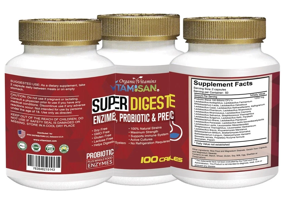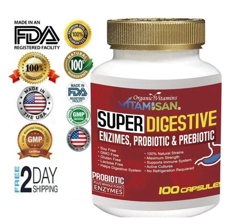 + TRACKING - Check your tracking package constantly to be aware of delivery. We offer free delivery using USPS new advantage it takes up to 9 to 10 days for delivery - Seller is not at fault of USPS carriers delays. Buyer has option at purchase to buy a PRIORITY label for sooner delivery. * NOTICE * - IF your address is a Cargo shipping agency address for delivery - Buyer is totally responsible for the delivery address/ Carriers and Sellers are NOT responsible for the delivery on Individuals that pick up delivery at those agencies!!! 100 CAPSULES SUPER DIGESTIVE ENZIME PROBIOTIC PREBIOTIC ORGANIC VITAMINS VITAMISAN ( T) SEE PICTURE FOR THE INGREDIENTS Lactobacillus Acidophillus, Lactobacillus Plantarum, Lactobacillus Casei, Lactobacillus Brevis, Lactobacillus Bulgarus, Lactobacillus Rhamnosus, Lactobacillus Paracasei, Lactobacillus Salivarius, Bifodobacterium Bifidum, Bifidobacterium Brevis +PAPAIN boswelia + bromelain and many more Directions: Take 2 Capsules before a meal as a dietary supplement. Many types of bacteria are classified as probiotics. They all have different benefits, but most come from two groups. LEGAL DISCLAIMER The statements made herein have not been evaluated by the Food and Drug Administration. The products & the information provided on this web site are not intended to treat* diagnose*cure*prevent or mitigate any condition or disease. As always, consult with your health care professional before taking any-medication or nutritional supplement. NOTE this product is not intended to cure treat any medical condition. Must use for at least 60 days in advance and in constantly use or application. ? We offer 2-day shipping and handling to ship your item and we offer USPS first class service package will could result in 5-9 days depending on carrier for delivery - please note that EBAY estimated times are only an estimation date not accurate. THANK YOU WE APPRECIATE CONTACTING US IF ANY CONCERN FIRST! OUR CUSTOMER SERVICES IS ALWAYS TO HELP YOU Policies Returns: We offer free returns BUT The only items/ pack/ bottles to be eligible to returns are IF the bottle or item are closed and with seal or in NEW condition as received. We cannot accept opened or used items or partial used, we only accept complete and new items for a full refund.