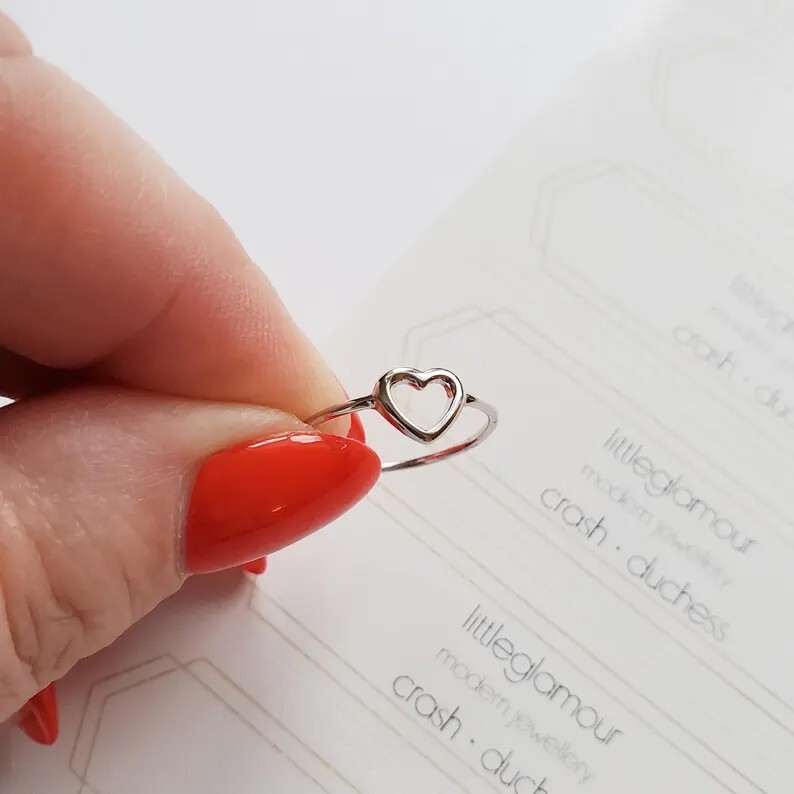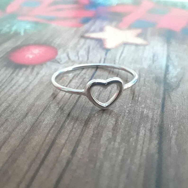 Show your love and appreciation with this elegant sterling silver heart ring, designed for women who cherish simplicity and elegance. This minimalist open heart design makes it the perfect gift for any occasion, including birthdays, anniversaries, or Mother's Day. Whether you’re celebrating a special moment or looking for a meaningful gesture, this ring is a timeless addition to any jewelry collection. Key Features: Premium Quality: Made from high-quality sterling silver for a durable, shiny finish that will last for years. Elegant Design: The dainty open heart symbolizes love and affection, making it a thoughtful gift for someone special. Minimalist Style: A sleek and simple design that is versatile enough for everyday wear or special occasions. Perfect Gift for Her: Ideal for anniversaries, birthdays, Valentine's Day, Mother’s Day, or as a promise ring to symbolize your commitment. Available in Multiple Sizes: Choose the perfect size for her finger to ensure a comfortable fit. Why You'll Love It: This charming heart ring is a perfect blend of timeless elegance and modern simplicity. Whether worn as a standalone piece or stacked with other rings, it’s sure to complement any style. Gift this beautiful ring to show someone how much you care.