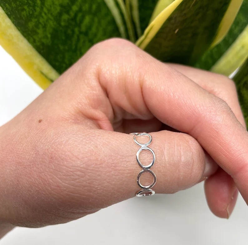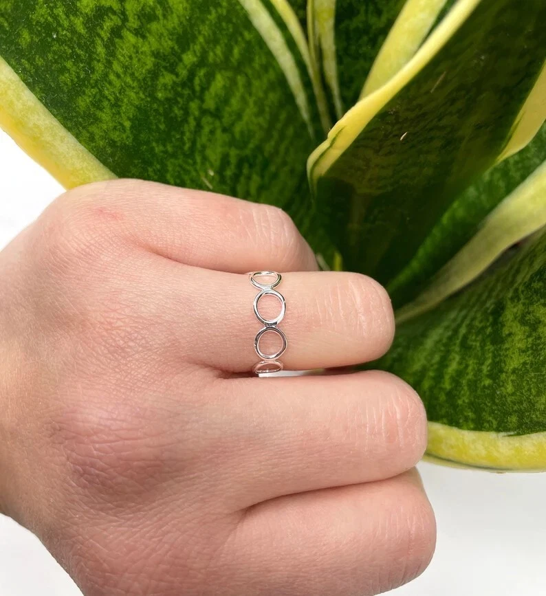 Add a touch of elegance to your jewelry collection with this beautiful 925 sterling silver adjustable circle ring . Designed with simplicity and sophistication in mind, this dainty, minimalist ring is perfect for everyday wear or special occasions. Key Features: Material : Crafted from high-quality 925 sterling silver for durability and timeless beauty. Adjustable Design : The open style allows for easy resizing, making it a perfect fit for any finger, including as a stylish thumb ring . Minimalist Look : The thin, delicate circle design adds a subtle yet elegant touch, making it ideal for layering with other rings or wearing on its own. Versatile : A perfect gift for birthdays, anniversaries, or just as a treat for yourself. This ring complements a variety of styles, from casual to formal wear. Whether you're looking for a new piece to complete your collection or a thoughtful gift for a loved one, this sterling silver ring will surely be a standout addition. Why Choose This Ring? Lightweight and comfortable for all-day wear Timeless and stylish design, perfect for any occasion Adjustable to ensure the perfect fit every time Sizing : Adjustable for a flexible fit.