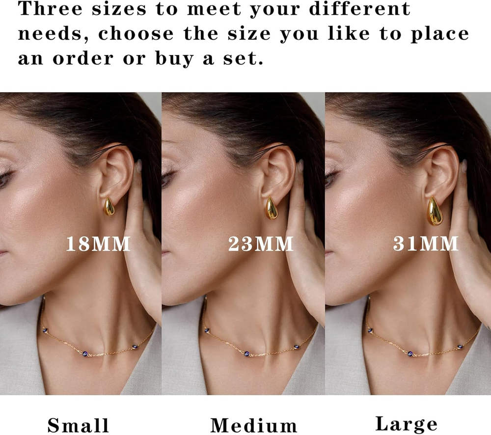 Store New Arrivals Add to Favorite View Feedback Contact Fast deliveries to the customer's home Quality customer service John Make the customers happy! Small Teardrop Gold Chunky Earrings for Women,Thick Hoop Hypoallergenic Earring Water Drop Earring Dupes for Women 18MM Description Product Description CONRAN KREMIX Earrings Add to Cart Add to Cart Add to Cart Add to Cart Add to Cart Customer Reviews 4.7 out of 5 stars 131 4.6 out of 5 stars 221 4.3 out of 5 stars 174 4.2 out of 5 stars 2,049 4.3 out of 5 stars 229 Price $7.99 $ 7 . 99 $12.99 $ 12 . 99 $12.99 $ 12 . 99 $12.97 $ 12 . 97 $13.99 $ 13 . 99 Brass ✔ ✘ ✘ ✘ ✔ Stainless Steel ✘ ✔ ✔ ✔ ✘ Real Gold Filled ✔ ✔ ✔ ✔ ✔ Gold &Silver ✔ ✔ ✔ ✔ ✔ Lightweight ✔ ✔ ✔ ✔ ✔ Gem Type No Gemstone Color Gold-3Pair Set Material Brass Metal Brass Department womens ABOUT US We offer the best prices around on high quality products. Our E-store includes media such as books, movies, music and games while offering electronics, toys, sporting apparel, clothing, tools, general home, garden items and more. SHIPPING We are always working hard to ensure your package arrives as soon as possible. Please understand that some factors like weather, high postal traffic, and the performance of shipping companies are outside of our control. We offer free shipping to the lower 48 states and ship within 2 business days of payment, usually sooner. We do not accept P.O. Boxes. Please provide a physical address. For shipping outside of the continental USA, we only use eBay's Global Shipping Program. The item is shipped to KY and then sent to the rest of the world. International customers are responsible for all duties and taxes. Continue to 'check out' to calculate costs for shipping the item to your country. Messages regarding eBay's Global Shipping Program MUST be directed at eBay EXCLUSIVELY. RETURNS We offer a 30-Day Return Policy on items in which you are not completely satisfied with. You have the option of a full-refund or an exchange of the item. No returns are available on items shipped outside of the USA PAYMENT We accept PayPal. CONTACT US This page content is yet to come Please ad us to your favorite seller and visit again later Thank You CUSTOMER SATISFACTION We try our very best to make sure every customer is completely satisfied. If there's a problem, message us! We're happy to help. WE ACCEPT