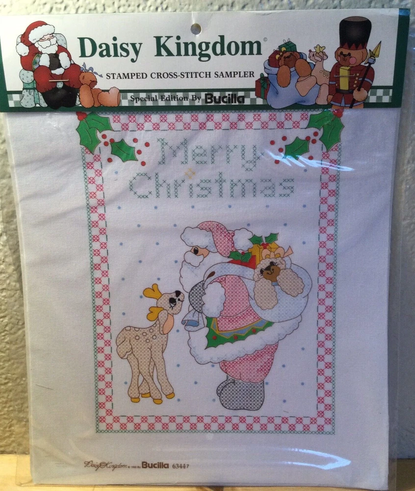 Daisy Kingdom Stamped Cross Stitch Sampler #63447 Christmas Santa VTG 1992 NOS Merry Christmas To upcycle, I reuse shipping material as often as possible. Buy more from my store and save on shipping.