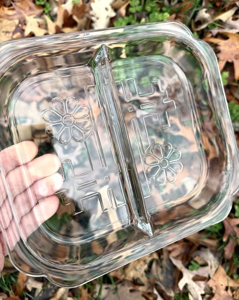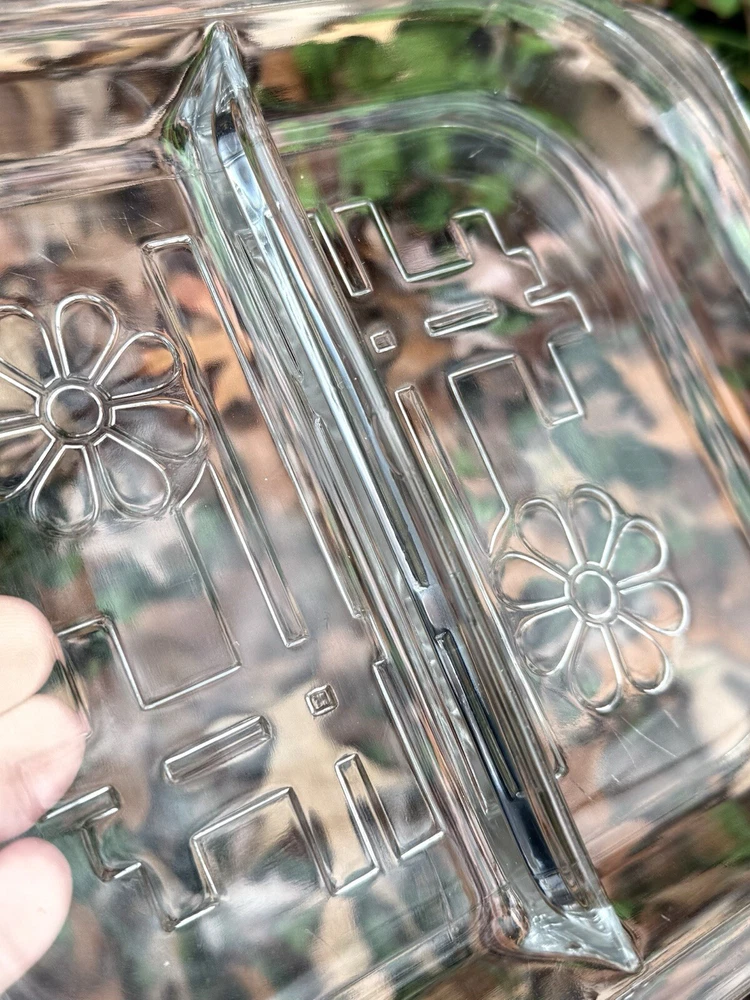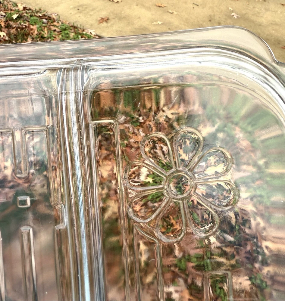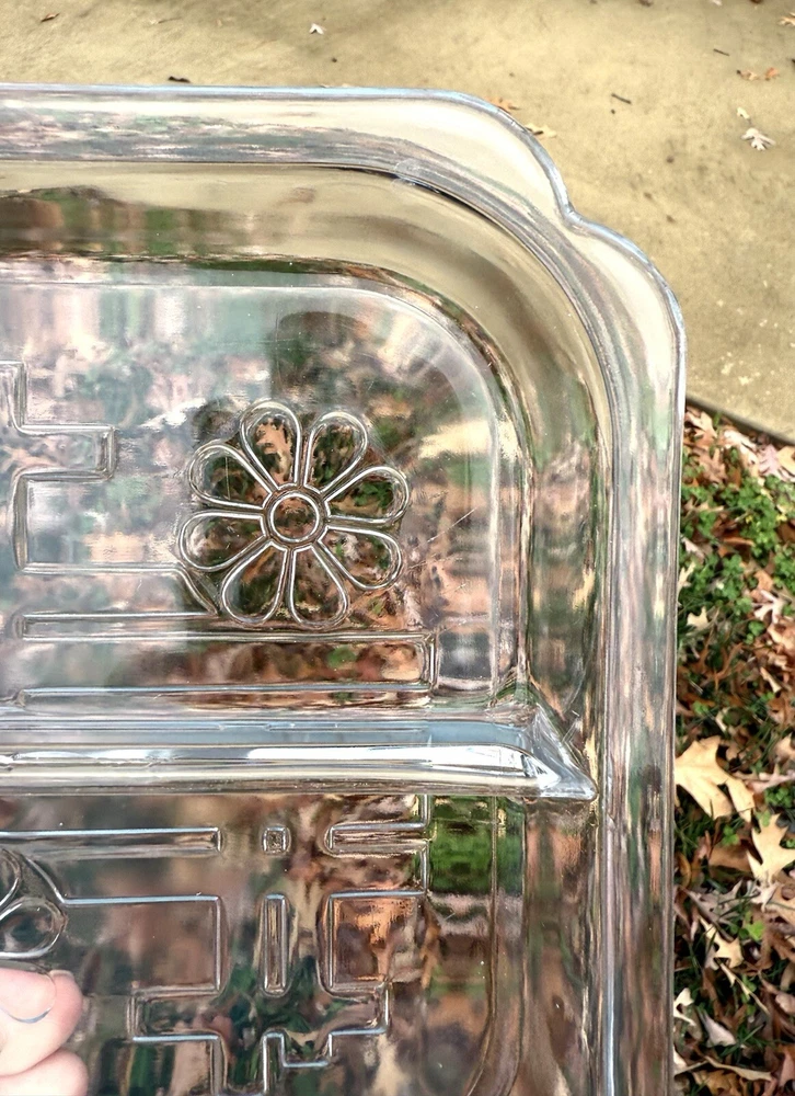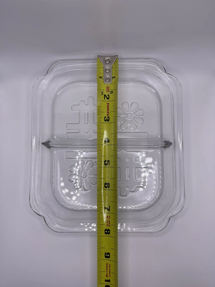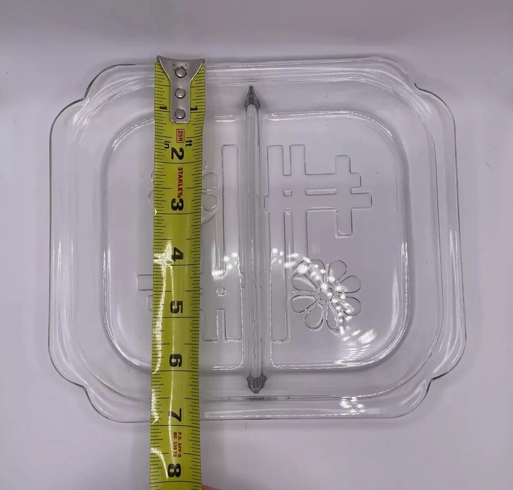 Here’s your chance to own this beautiful vintage glass tray insert that went with the (Toastmaster Daisy Hospitality set), produced by Duncan Glass circa 1939. Please note: This tray does have scratches on bottom from use it was loved in good used condition for the age. Also, no chips or cracks. Please see all photos before purchasing. Thanks for looking and supporting business. Measurements: Measures about 7x8 inches