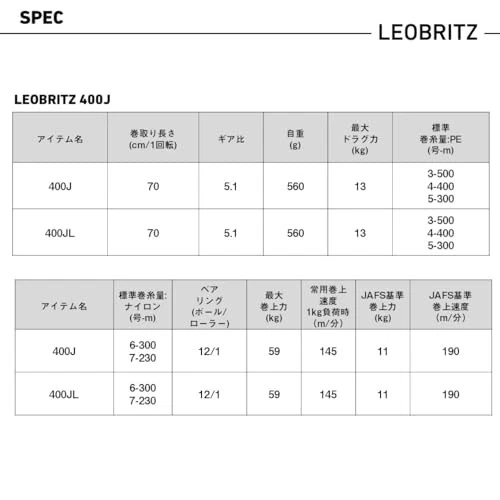 Description Condition: NEW <100% authentic product> 400JLnavy/400JL/00810053Style:400jPackage Quantity:1 ・Lightweight 19.2 oz (560 g) BRITZ power for all targets ・Weight: 2.0 oz (560 g); Gear Ratio: 0.2 oz (5.1 g) ・Winding Length: 27.6 inches (70 cm) / Handle Rotation: 27.6 lbs (13 kg) ・Maximum Winding Force: 23.2 lbs (59 kg) (143.3 lbs (65 kg) (Standard Line Winding Weight PE (No. - M)) (3 - 500 / 4 - 400 / 5 - 300 cm) ・Normal winding speed: 2.2 lbs (1 kg) load (m/min): 145 (161) With an abundance of line capacity (PE4 - 400 m No. 5 - 300 m) and a lightweight body with a weight of 19.2 oz (560 g). One-hand comfortable operation combined with the JOG power lever provides a comfortable feel in your hand. It is not only lightweight but also equipped with a BRITZ motor for high power and high speed. The drag is equipped with an ATD that continues to work smoothly and the LCD screen is equipped with a dot LCD counter with excellent visibility. In addition the fall brake dial can be set instantly to the speed of the fall and is equipped with a drop bait which is excellent for capturing the interlayer response of the Slu-Maker. Excellent basic performance suitable for all targets from blues and offshore squid to medium depth. Supports electric mobile settings. Payment Please pay within 5 days after the auction closed. Shipping DHL, FedEx, Japan Post with tracking number. We will upload the tracking number so you can check the delivery status of your package. About other area, please ask me. When you purchase two or more my items, I can send them together and discount shipping cost. If you live in a remote area, additional fees may apply. Returns Returns are accepted ONLY if the item was not the item described. International Buyers - Please Note: * Import duties, taxes and charges are not included in the item price or shipping charges. These charges are the buyer's responsibility. * Please check with your country's customs office to determine what these additional costs will be prior to bidding/buying. * These charges are normally collected by the delivering freight (shipping) company or when you pick the item up - do not confuse them for additional shipping charges. * We do not mark merchandise values below value or mark items as "gifts" - US and International government regulations prohibit such behavior.