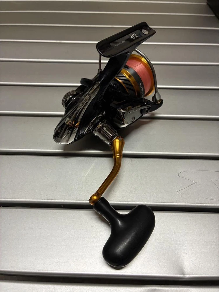 1. This Daiwa Rebros LT6000D-H spinning reel is a fantastic find! Smooth operation thanks to the 4-ball-bearing system, and the 12kg max drag handles big fish with ease. The 200m nylon line capacity and 5.7 gear ratio make it great for long casts and quick retrieves. Despite being used, it’s in excellent shape—just minor cosmetic wear. The T-large knob and 60mm handle provide a comfortable grip, and the 101cm line retrieval per turn is super efficient. Perfect for anglers looking for high performance without the brand-new price!