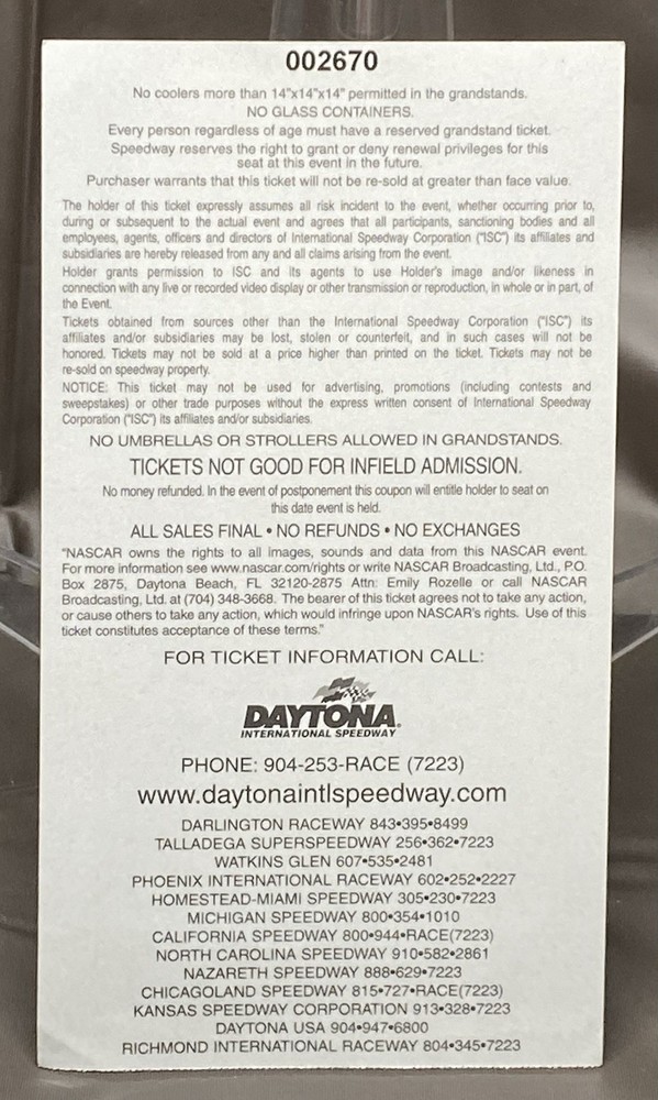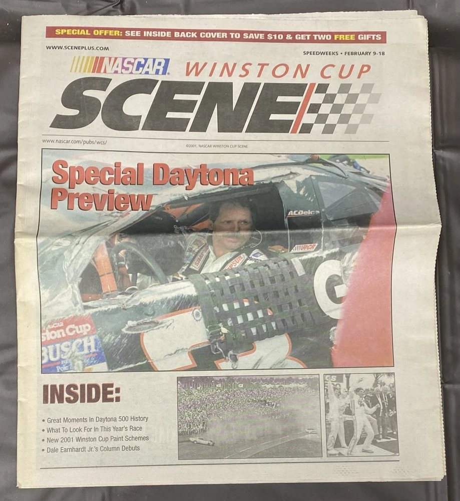 Dale Earnhardt Final Race Lot Daytona 500 Feb 2001 Ticket Program NASCAR Scene Paper. Program and We’re Driven To Win have slight damage. Interactive program CD-ROM may have light surface scratches. Ticket is laminated and one corner is peeling a little bit. Please see pictures for condition. Visit our Store for more Tickets, NASCAR, and Dale Earnhardt items. Thank you.