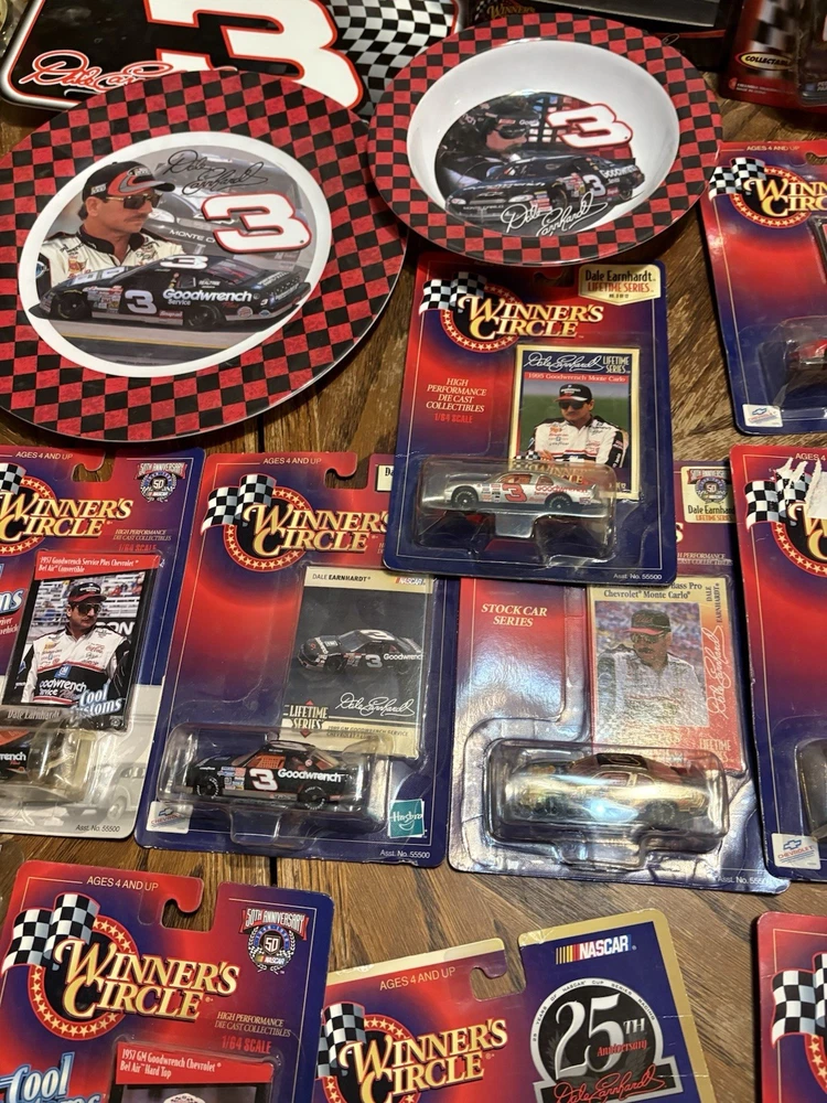 The Dale Earnhardt Jr. Collector Lot is a collection of officially licensed fan apparel and souvenirs for auto racing fans, specifically those who support NASCAR driver Dale Earnhardt Jr. and his team, Richard Childress Racing. This lot includes multi-color items such as hats, t-shirts, and other memorabilia featuring the iconic driver's name and signature. Made in the United States, these unisex adult-sized items are perfect for any fan looking to show their support for Dale Earnhardt Jr. and the sport of auto racing.