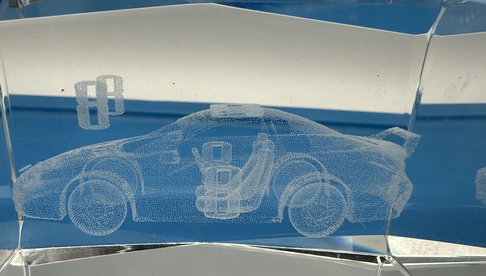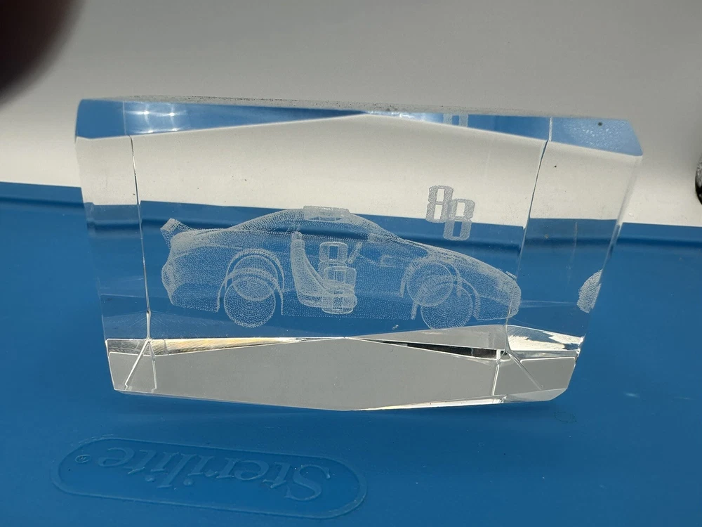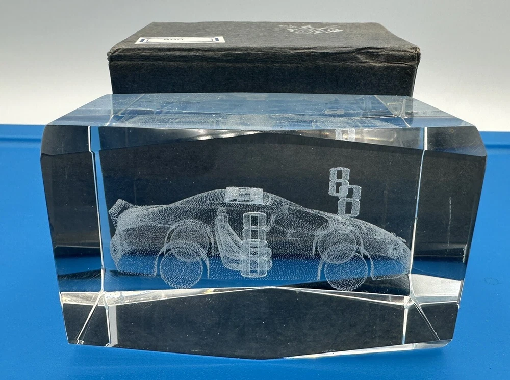Up for sale is a stunning Dale Earnhardt Jr #8 laser-etched glass 3D paperweight with box. This amazing piece is a must-have for any NASCAR enthusiast or Dale Jr. fan. The clear glass paperweight measures 3 inches and features intricate details of the driver's car and signature. This unique collectible is perfect for displaying in the office or at home and would make a great addition to any racing memorabilia collection. Don't miss out on the opportunity to own this rare piece of racing history.