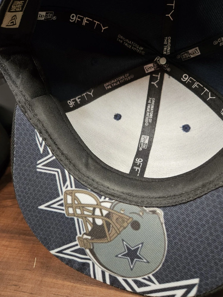 Crafted for fans with a penchant for both fashion and football, the Dallas Cowboys New Era 9Fifty Snapback Hat is a versatile accessory for any wardrobe. Its adjustable strap ensures a comfortable fit for all-day wear, while the striking blue color and solid pattern make it an easy match with a variety of outfits, whether you're at a game or just out and about. This baseball cap is not only a statement piece for NFL admirers but also practical with its UV protection feature, making it ideal for various occasions from a casual day at the office to an outdoor travel adventure. The cap's durable snapback construction means it's ready for whatever your streetwear style demands, including parties, cocktails, and even business settings.