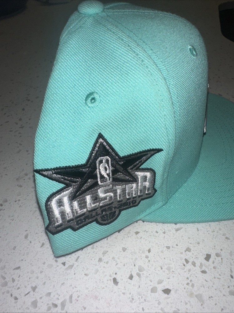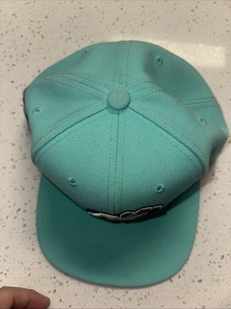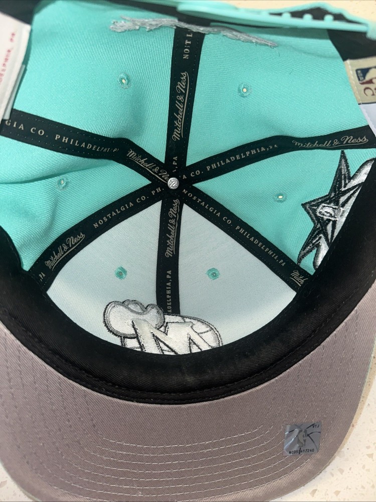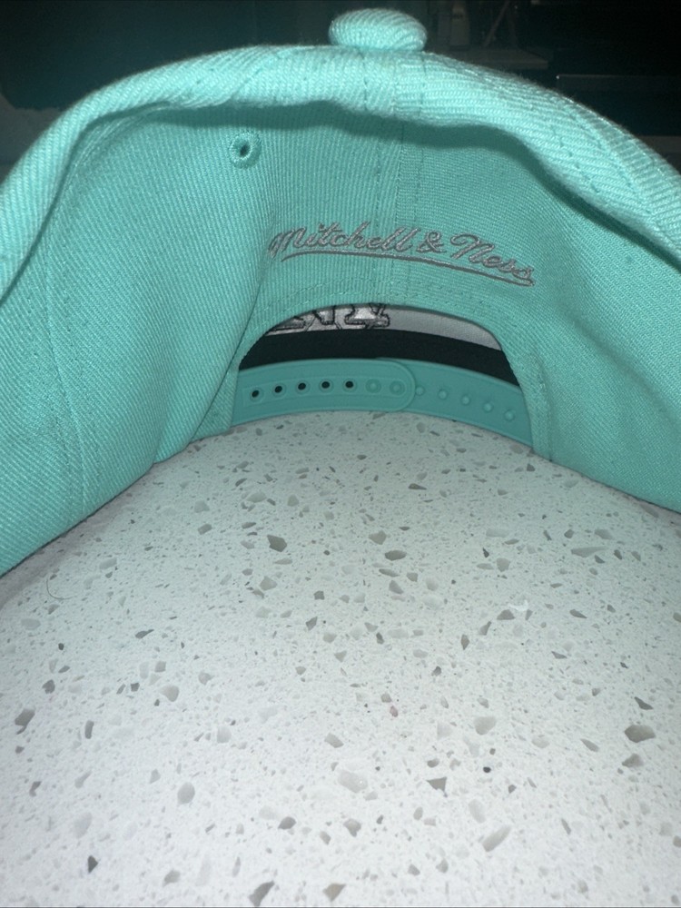 Dallas Mavericks Mitchell and Ness SnapBack hat Tiel green with grey lettering and grey under bill Slightly worn