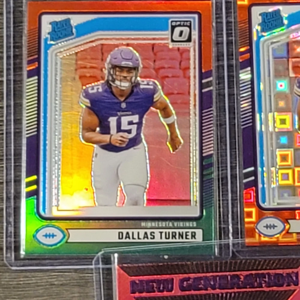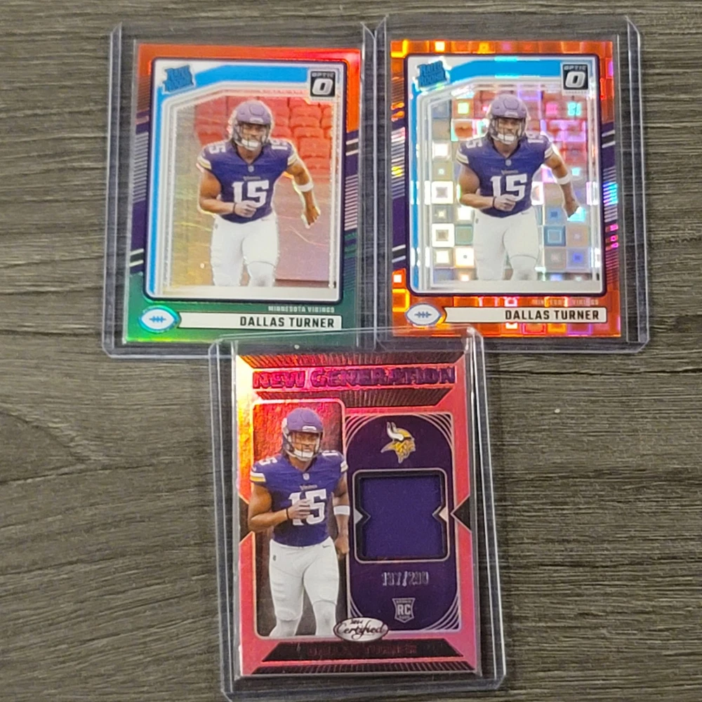 Dallas Turner RC Lot Donruss Optic Red Pandora Red Green Certified Patch /299. Condition is Used. Shipped with USPS Ground Advantage.