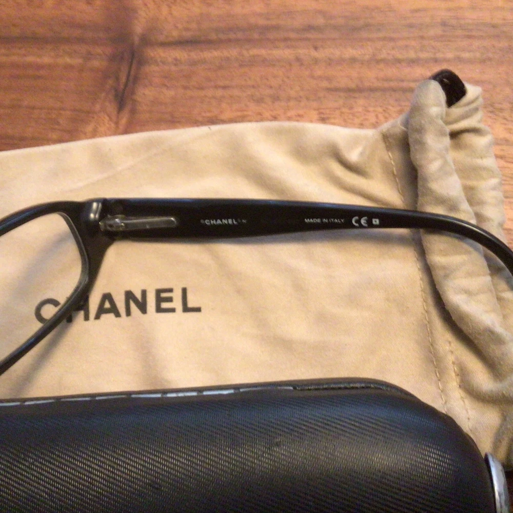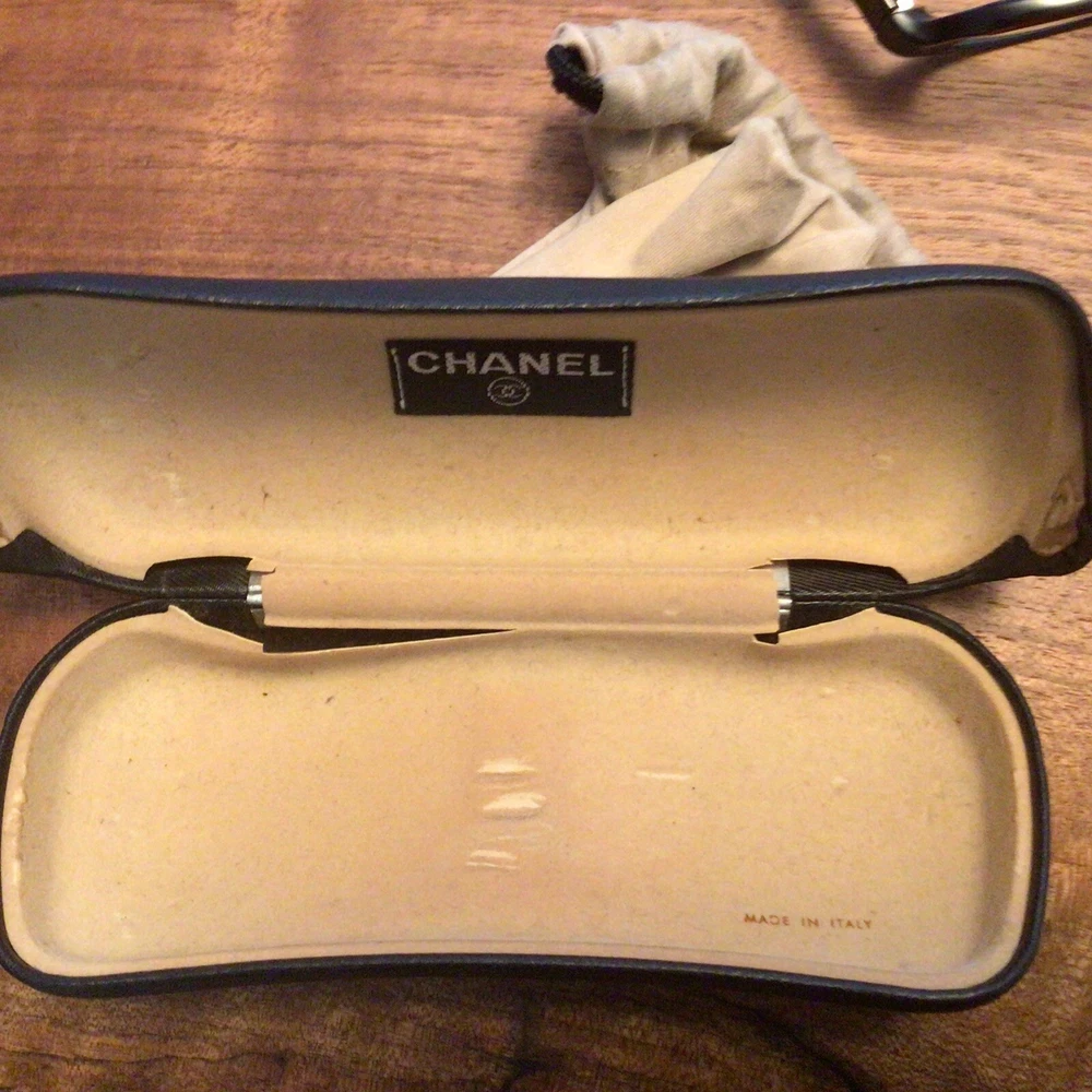 Damaged Chanel Prescription Eyeglass Frames Made In Italy With Case And Dust Bag. These are pre-owned and loved. The left arm is wide and loose and may not be able to be fixed, so please understand these are sold “as is”. Across the top front is approximately 5”. The case (that shows signs of use) and dust bag are included. The frames have prescription lenses. Buyer pays $6 shipping. I will only ship within the U.S. Thank you for looking.