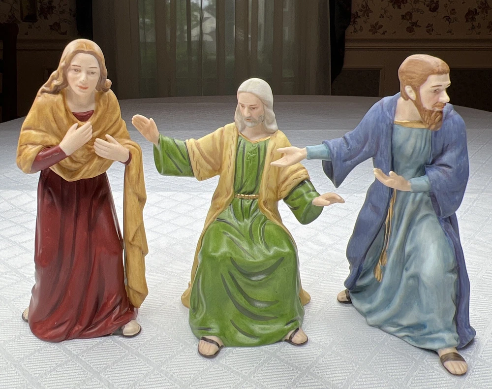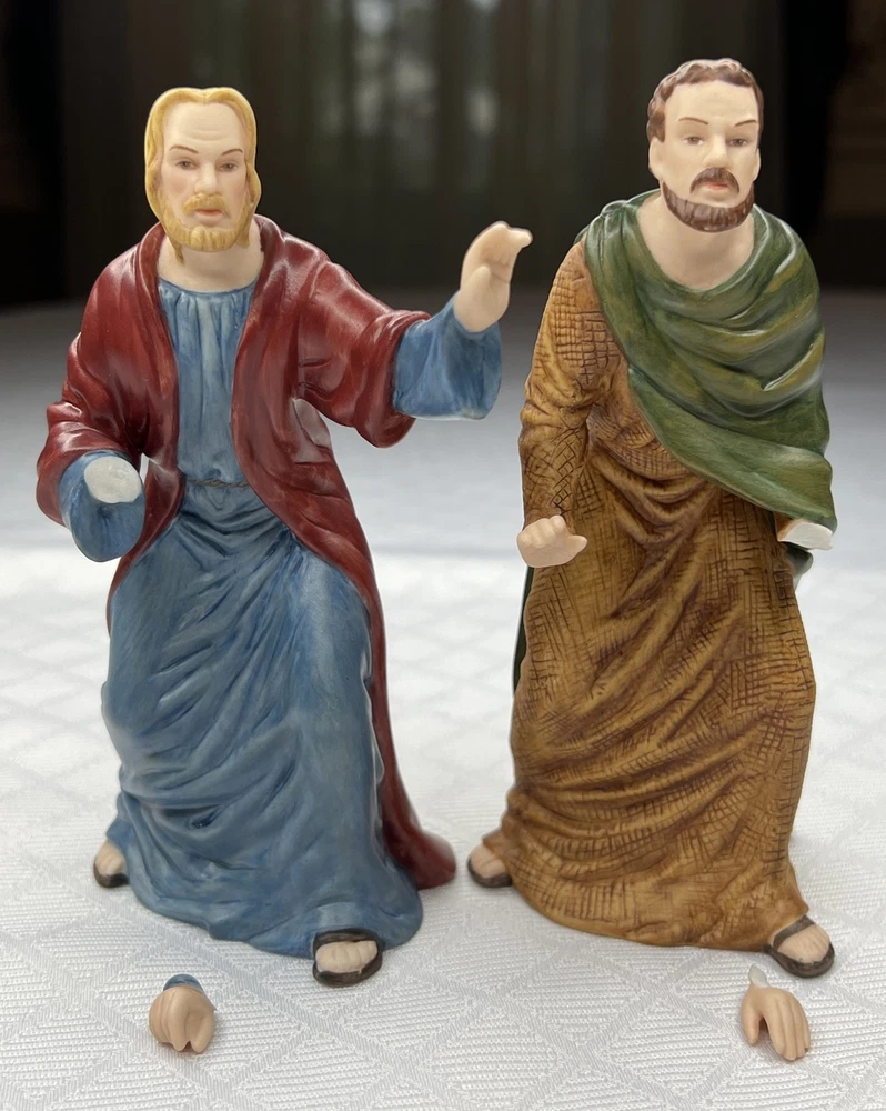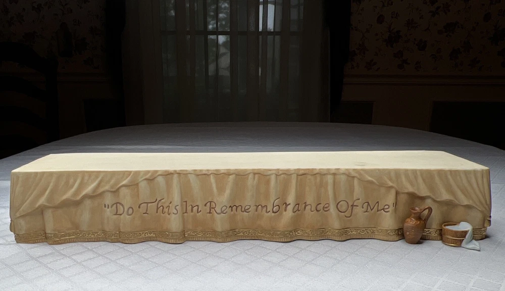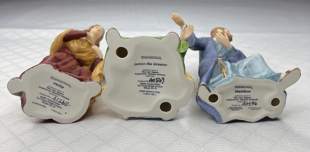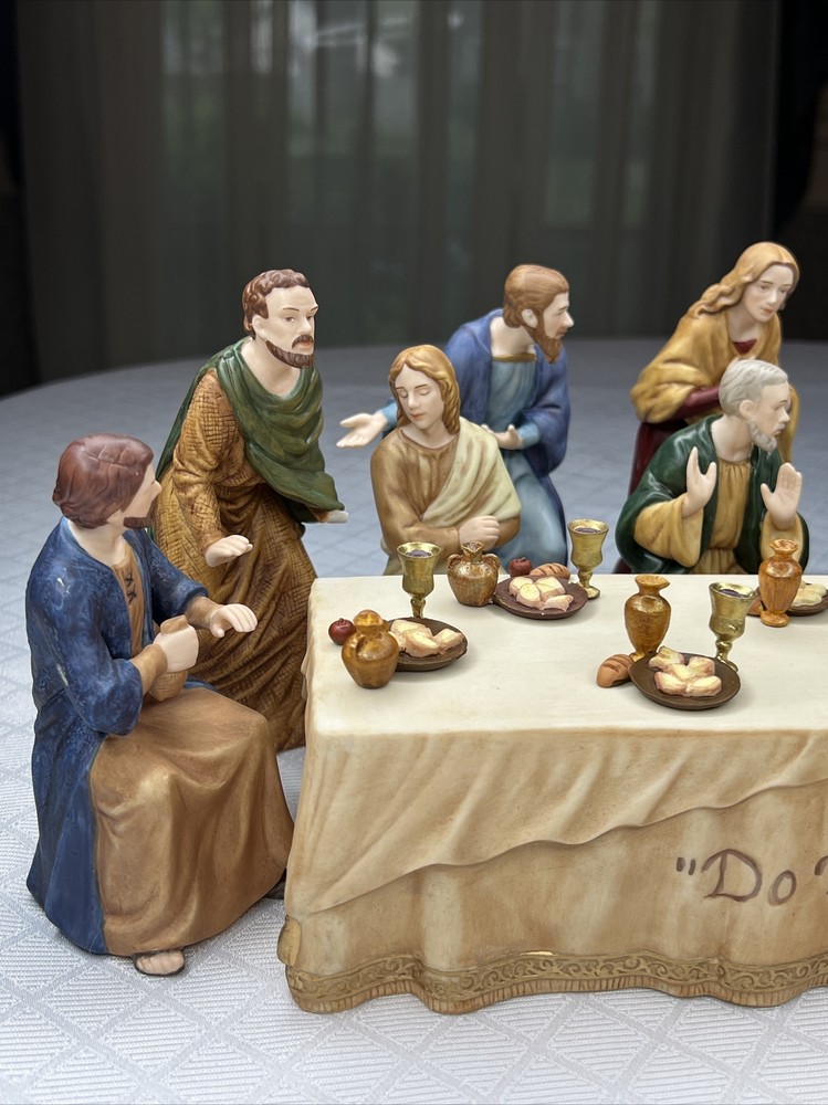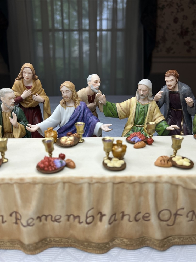 Thomas Kincade Hawthrone Village The Last Supper Porcelain Figures - Damaged. "Remembrance Table" measures approximately 16" W x 2-1/2" H x 3-1/2" D. Please note- one has chipped a finger and three have hands chipped off. The hands and the finger are included and can be reattached with glue. Please see pictures for accurate description of the item and condition. The original foam and box are not included. #27I