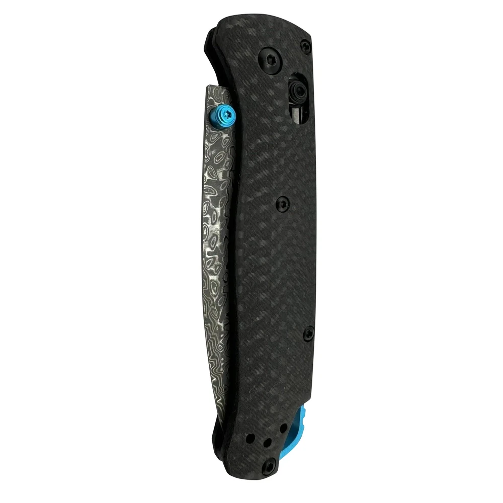 Damascus Folding Knife, Carbon Fiber Scales, 2.94" Drop Point, Axis Lock, EDC - SHIPS FROM TEXAS This pocket EDC knife is a true gem for knife enthusiasts and everyday carry lovers alike. Featuring sleek carbon fiber scales and a Damascus drop point blade, this knife combines stunning aesthetics with unmatched functionality. Its lightweight design and reliable axis-style lock make it the perfect tool for daily tasks or collection-worthy displays. Key Features: Handle Material: Carbon fiber scales (4.25") for a lightweight, modern feel Blade Material: Beautiful Damascus steel with a 2.94" drop point design Lock Mechanism: Smooth and secure axis-style lock for easy one-handed operation Additional Features: Blue thumb screw for ambidextrous use, pocket clip for convenient carry Dimensions: Total length: 7.375", Weight: 2.1 oz Why You'll Love It: This knife is not only practical but also a head-turner. Loved by everyone who purchases it, it strikes the perfect balance between form and function. Its ultra-lightweight construction and ergonomic design make it comfortable to carry and use all day long. Whether you’re a collector or looking for your next reliable EDC tool, this knife is ready to exceed expectations. Ships from Texas. Remember, stay sharp, stay ready, shoot straight!