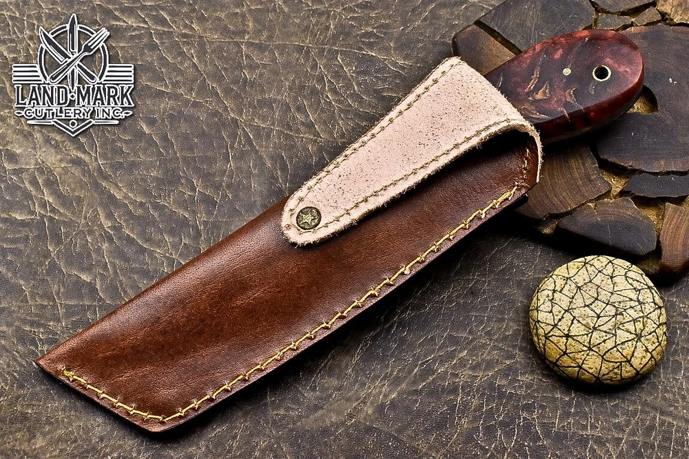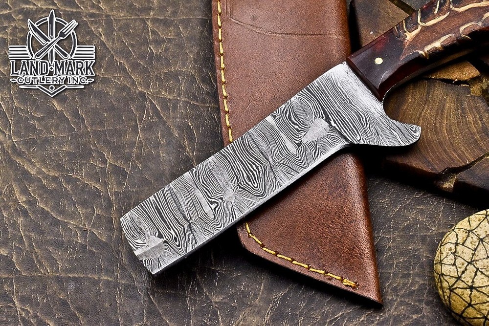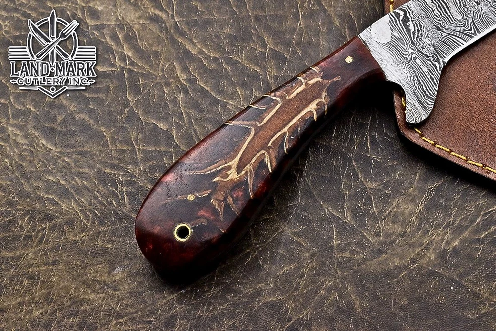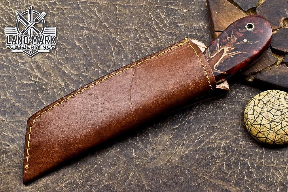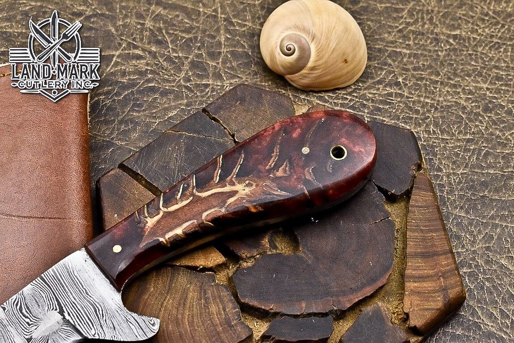 Custom Hand Made DAMASCUS STEEL HUNTING KNIFE WITH PINE CONE HANDLE We offer a shipping discount for More then one purchased . And discount will be apply on combine invoice, Discount will not apply on separate payment. ITEM DETAILS OVER ALL LENGTH 8.0 inches long (Approx) HANDLE LENGTH 4.0 inches long (Approx) BLADE LENGTH 4.0 inches long (Approx) BLADE HARDNESS 58-60 HRC Which Holds The Sharp Edge For Long Time. HANDLE PINE CONE COVER LEATHER SHEATH This Awesome custom made KNIFE has a nice hand forged with the combination of 4340 & 1080 steel. HOW OUR DAMASCUS IS MADE: All our Damascus is real and not just an acid etch. Damascus is a mixture of 1080HC and 4340 nickel carbon. You heat them up together and then fold the bar over and over to get the desired layers, ours are 396 layers. Then you burn the blade in acid, and it turns the nickel satin color and the high carbon turns blackish gray. This is how the layers are exposed to show the layers of the new steel created coined "Damascus". All Damascus is acid etched to show the layers. If you high polish the metal it will be shinny satin like all steels. Only after you burn the sides of the blade with acid do you see the layers of the two steels. Makes sense? After we make our knives we high polish the handles and put an edge on the blade. The high polishing buffs off the acid burned layer of the handle, and the blade edge is sharpened and the acid burned edge becomes satin. You can re-burn the tang of the blade near the handles and the edge of the blade and it will show the layers once more. All our knives are hand made, durable and unique ***** YOU WILL RECEIVED THE SAME KNIFE Qality Standards Our Damascus blades are made from high quality non-stainless steels which rival or exceed any Damascus blade made from the 10 series with 4340. Our Damascus combination has taken years to perfect and has been tested under a variety of application which will offer professional performance in categories of toughness, strength (lateral stress) and edge honing and holding ability. In a 5 spot Rockwell test our blades will average near or close to 58 which offers a perfect balances between its toughness and strength.Our blades due to carbon content need to be regularly treated with wax and/or 3 in 1 oil to maintain its superior quality. Questions if you have any question feel free to send us message we aim to answer all questions within 24 hours Feedback If you are not satisfied with our service please contact us before leaving any negative or natural feedback. We will resolve all issues as quickly as possible. Disclaimer We are not responsible for any injuries associated with the use of our tools. Our products are intended for legal use only by responsible buyers. Therefore, we will not sell our products to anyone under the age of 18. Before bidding please check your country laws as some countries Custom don't allow this. If your purchase is held by Custom Authorities in your country/State we will not be responsible for that and no refund will be issued Shipping We offer a 20% shipping discount for More then one purchased . And discount will be apply on combine invoice, Discount will not apply on separate payment We ship within 24 hours after receiving complete payment but this can be delayed due to week ends or Governments and Religious Festivals . . This is beyond our control and we apologize for this inconvenience. Precautions Our Tools are very sharp so open and use them very carefully We are not responsible for any injuries associated with the use of our tools Tips to Care knife 1. NEVER STORE YOUR KNIFE FOR LONG TIME IN LEATHER SHEATH. 2. LEATHER CAN ABSORB WATER, WHICH WILL RUST THE KNIFE. 3. ALWAYS CLEAN THE BLADE AFTER USING WITH OIL OR WAX