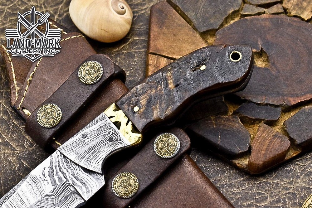 This Damascus steel hunting knife is a true work of art! The ram horn handle adds a rugged yet elegant touch, and the blade’s sharpness holds up incredibly well. The leather sheath fits perfectly, making it both functional and stunning. The craftsmanship is flawless—definitely worth every penny, especially with the combined shipping discount. A must-have for any outdoors enthusiast or collector!
