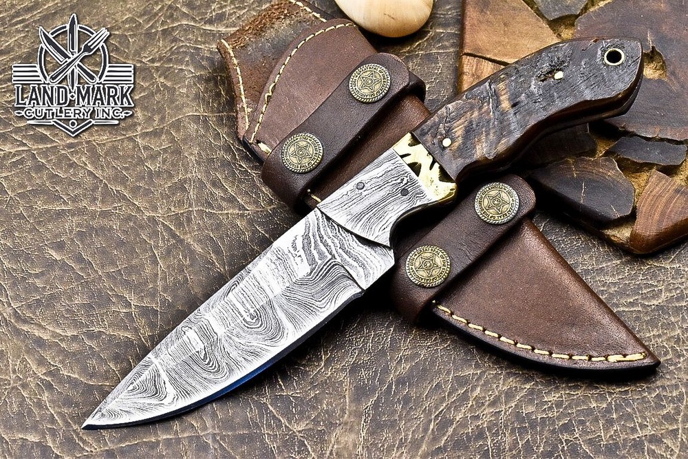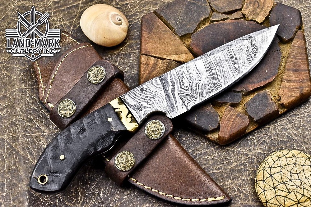 Custom Hand Made DAMASCUS STEEL HUNTING KNIFE WITH RAM HORN HANDLE We offer a shipping discount for More then one purchased . And discount will be apply on combine invoice, Discount will not apply on separate payment. ITEM DETAILS OVER ALL LENGTH 8.0 inches long (Approx) HANDLE LENGTH 4.0 inches long (Approx) BLADE LENGTH 4.0 inches long (Approx) BLADE HARDNESS 58-60 HRC Which Holds The Sharp Edge For Long Time. HANDLE RAM HORN COVER LEATHER SHEATH This Awesome custom made KNIFE has a nice hand forged with the combination of 4340 & 1080 steel. HOW OUR DAMASCUS IS MADE: All our Damascus is real and not just an acid etch. Damascus is a mixture of 1080HC and 4340 nickel carbon. You heat them up together and then fold the bar over and over to get the desired layers, ours are 396 layers. Then you burn the blade in acid, and it turns the nickel satin color and the high carbon turns blackish gray. This is how the layers are exposed to show the layers of the new steel created coined "Damascus". All Damascus is acid etched to show the layers. If you high polish the metal it will be shinny satin like all steels. Only after you burn the sides of the blade with acid do you see the layers of the two steels. Makes sense? After we make our knives we high polish the handles and put an edge on the blade. The high polishing buffs off the acid burned layer of the handle, and the blade edge is sharpened and the acid burned edge becomes satin. You can re-burn the tang of the blade near the handles and the edge of the blade and it will show the layers once more. All our knives are hand made, durable and unique ***** YOU WILL RECEIVED THE SAME KNIFE Qality Standards Our Damascus blades are made from high quality non-stainless steels which rival or exceed any Damascus blade made from the 10 series with 4340. Our Damascus combination has taken years to perfect and has been tested under a variety of application which will offer professional performance in categories of toughness, strength (lateral stress) and edge honing and holding ability. In a 5 spot Rockwell test our blades will average near or close to 58 which offers a perfect balances between its toughness and strength.Our blades due to carbon content need to be regularly treated with wax and/or 3 in 1 oil to maintain its superior quality. Questions if you have any question feel free to send us message we aim to answer all questions within 24 hours Feedback If you are not satisfied with our service please contact us before leaving any negative or natural feedback. We will resolve all issues as quickly as possible. Disclaimer We are not responsible for any injuries associated with the use of our tools. Our products are intended for legal use only by responsible buyers. Therefore, we will not sell our products to anyone under the age of 18. Before bidding please check your country laws as some countries Custom don't allow this. If your purchase is held by Custom Authorities in your country/State we will not be responsible for that and no refund will be issued Shipping We offer a 20% shipping discount for More then one purchased . And discount will be apply on combine invoice, Discount will not apply on separate payment We ship within 24 hours after receiving complete payment but this can be delayed due to week ends or Governments and Religious Festivals . . This is beyond our control and we apologize for this inconvenience. Precautions Our Tools are very sharp so open and use them very carefully We are not responsible for any injuries associated with the use of our tools Tips to Care knife 1. NEVER STORE YOUR KNIFE FOR LONG TIME IN LEATHER SHEATH. 2. LEATHER CAN ABSORB WATER, WHICH WILL RUST THE KNIFE. 3. ALWAYS CLEAN THE BLADE AFTER USING WITH OIL OR WAX